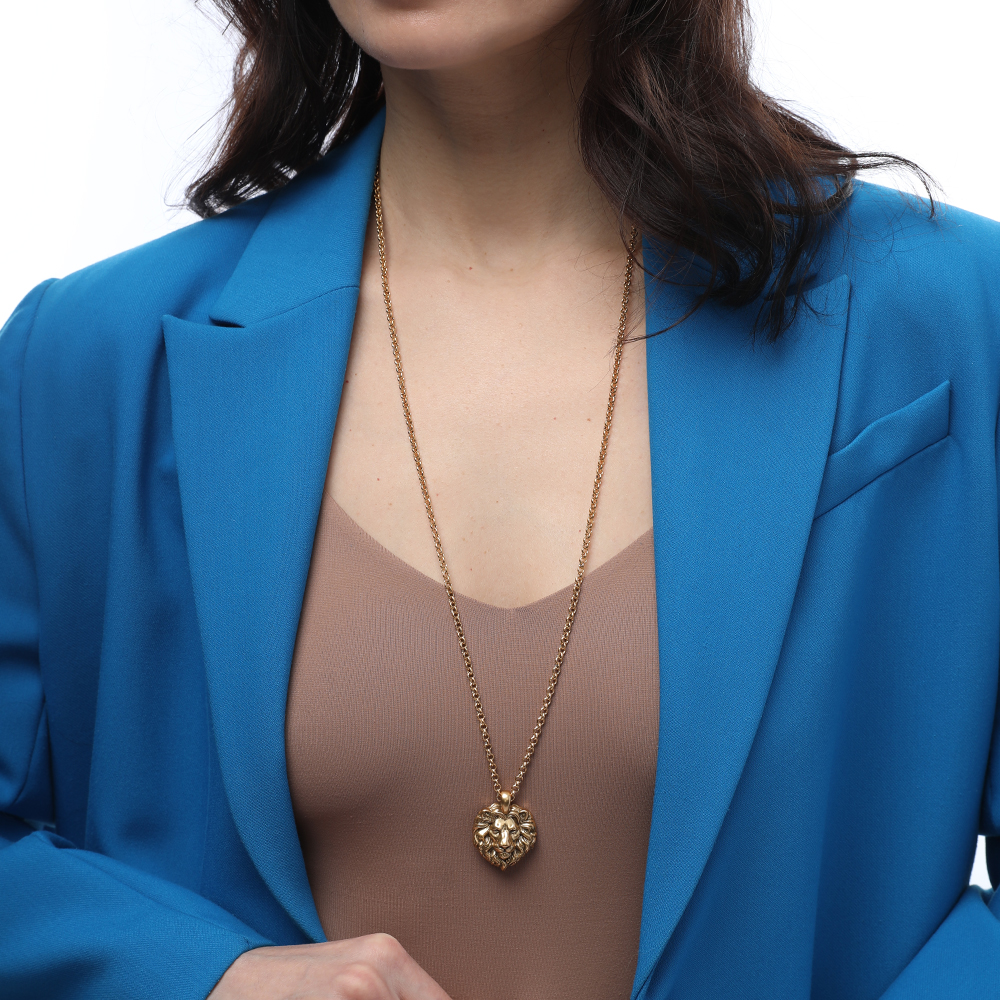 Описание: Изготовлено из ювелирного сплава на основе латуни с гальваническим покрытием золотом с патиной. Длина цепочки 85см.Размер кулона 2.5х3.5см.
