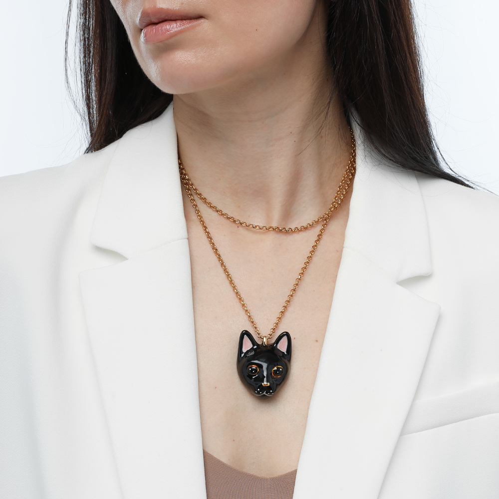 Описание: Изготовлено из ювелирного сплава на основе латуни с гальваническим покрытием золотом. Изделие украшает черная и розовая эмаль. Длина цепочки 90см, размер кулона 4.5см.