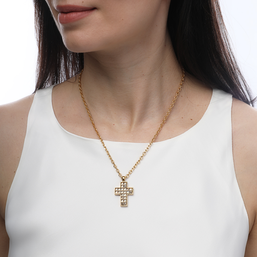 Описание: Изготовлено из ювелирного сплава на основе латуни с гальваническим покрытием золотом. Изделие украшают кристаллы SW цвета шампань. Длина цепочки 50см. Размер кулона 3.2х2.2см.