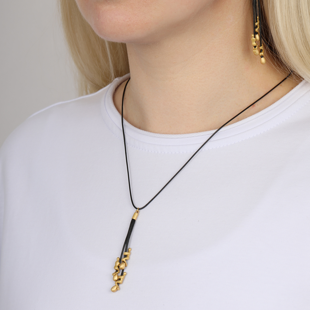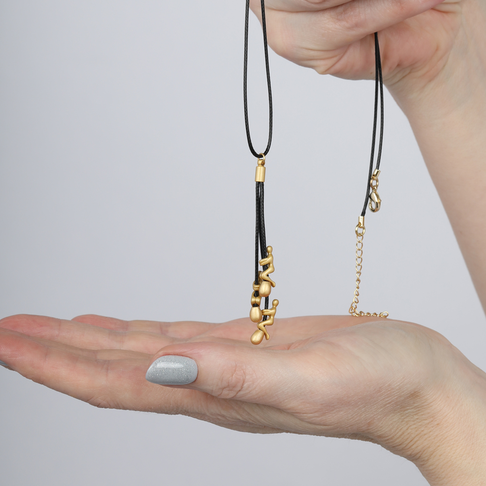 Описание: Изготовлено из ювелирного сплава на основе латуни с гальваническим покрытием матовым золотом. Длина черного текстильного шнурка 52см. Замок-карабин с удлинителем 5см. Длина кулона 6см.