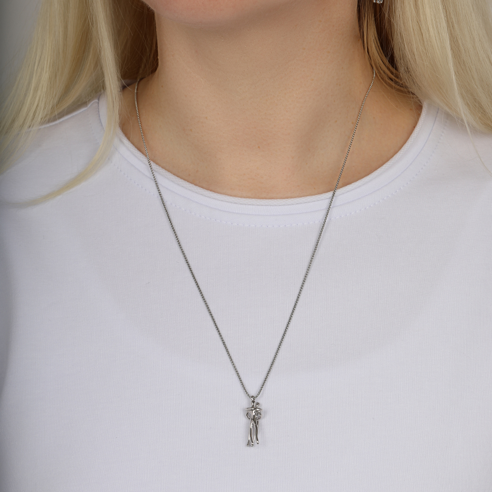 Описание: Изготовлено из ювелирного сплава на основе латуни с гальваническим покрытием родием. Длина цепи регулируется. Максимальная длина 64см. Длина кулона 2.5см.