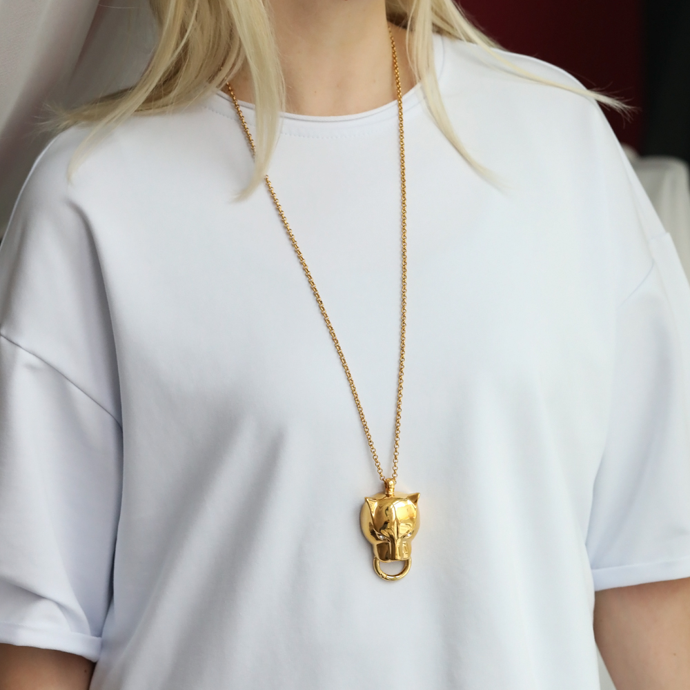 Описание: Изготовлено из ювелирного сплава на основе латуни с гальваническим покрытием золотом. Изделие украшают белые кристаллы SW. Размер украшения 5х3, 5см. Длина цепи 80см.
