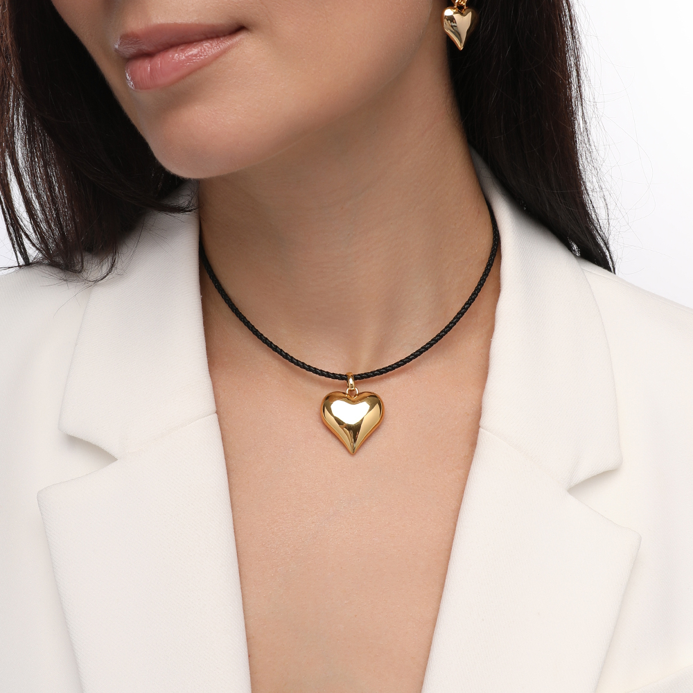 Описание: Изготовлено из ювелирного сплава на основе латуни с гальваническим покрытием золотом. Размер кулона 2.5х2.5см. Длина черного кожанного шнурка 38см. Замок удлинитель 7см.
