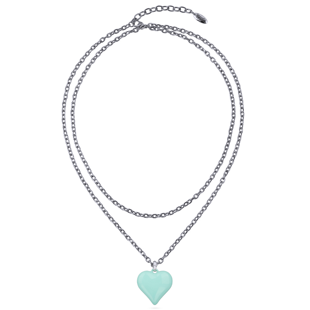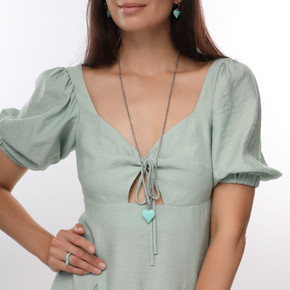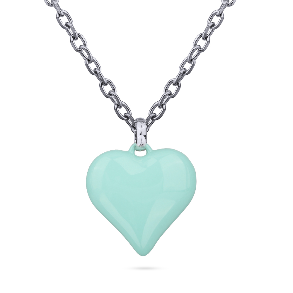 Описание: Изготовлено из ювелирного сплава на основе латуни с гальваническим покрытием родием. Изделие украшает эмаль цвета морская свежесть. Длина цепочки 90см.Удлинитель 5см. Размер кулона 2.5х2.5см.