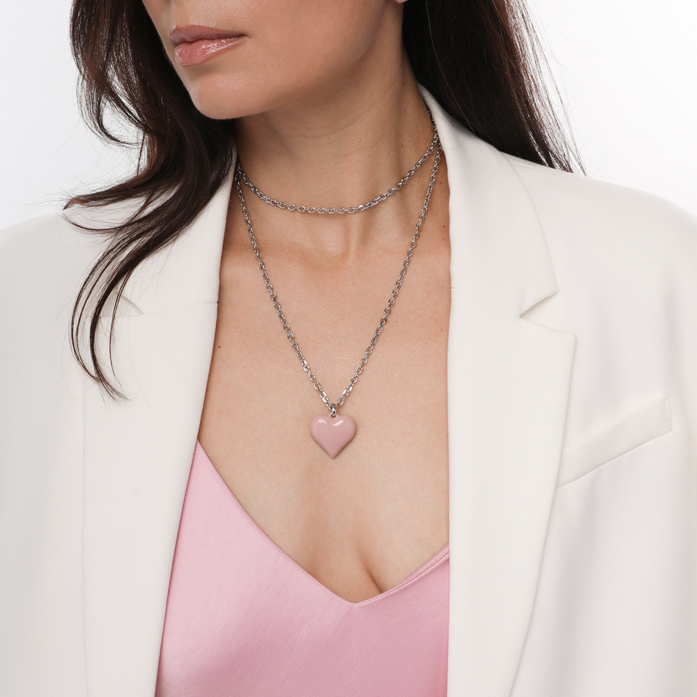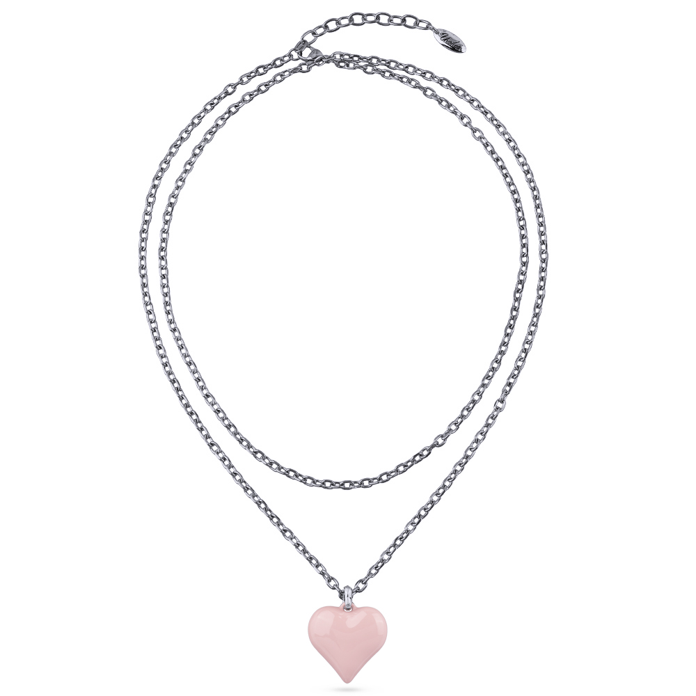 Описание: Изготовлено из ювелирного сплава на основе латуни с гальваническим покрытием родием. Изделие украшает розовая эмаль. Длина цепочки 90см. Удлинитель 5см. Размер кулона 2.5х2.5см.
