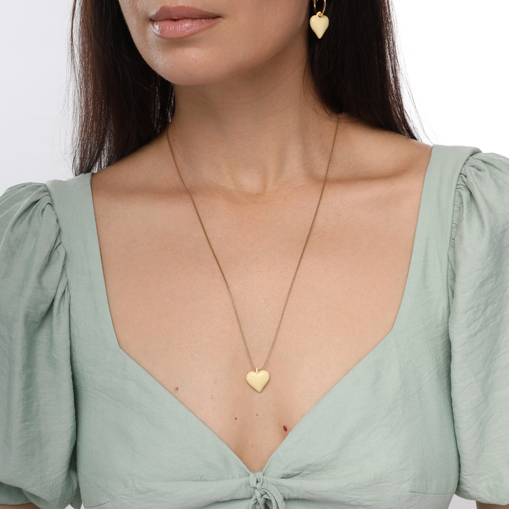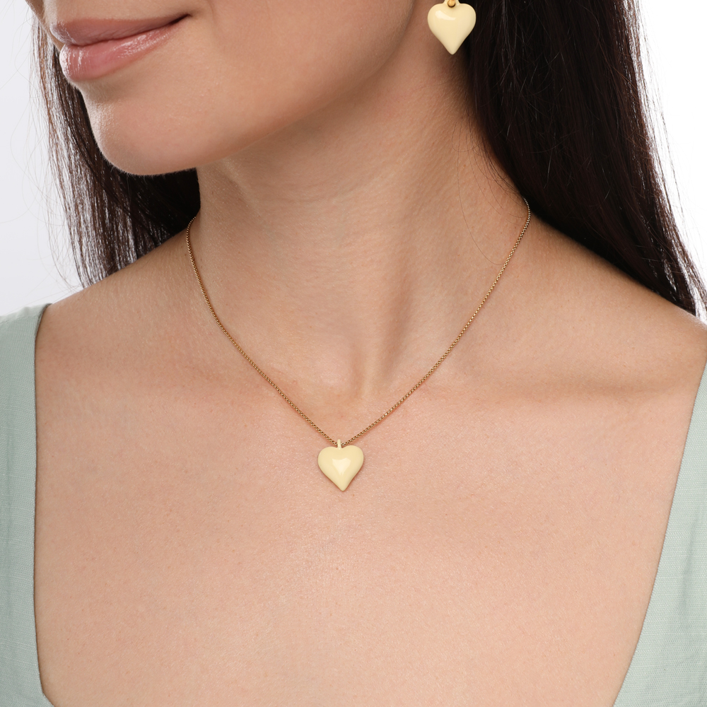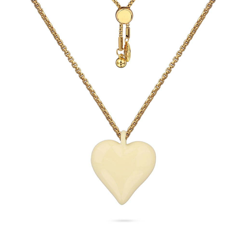 Описание: Изготовлено из ювелирного сплава на основе латуни с гальваническим покрытием золотом. Изделие украшает эмаль цвета сливочного масла. Размер кулона 1.6х1.6см. На цепочке установлен бегунок регулировки длины. Максимальная длина цепочки 82см.