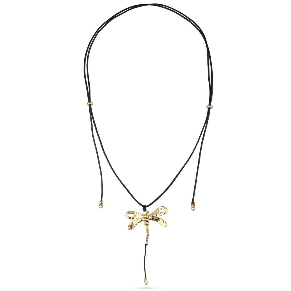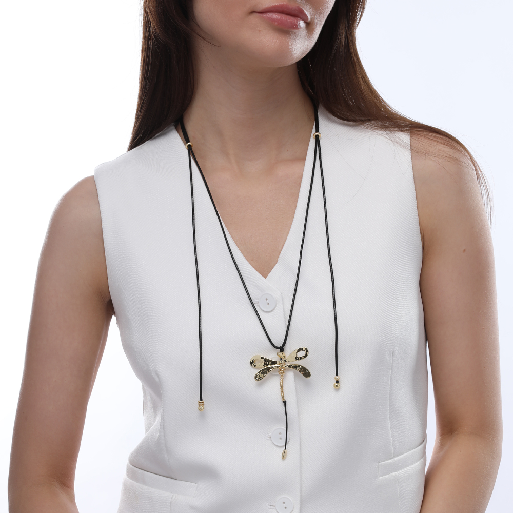 Описание: Изготовлено из ювелирного сплава на основе латуни с гальваническим покрытием золотом. Регулируемая длина черного текстильного шнурка до 145см. Размер кулона 9х5, 5см.