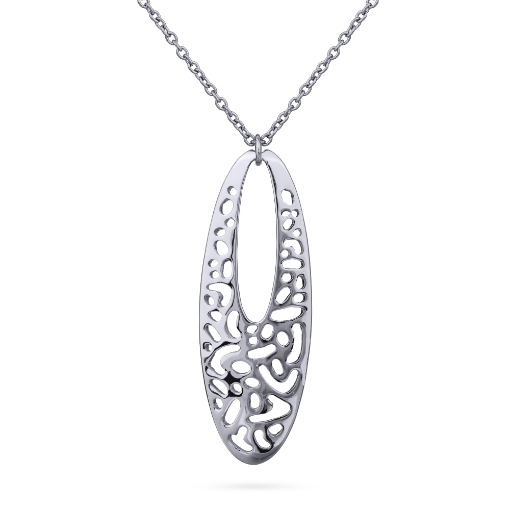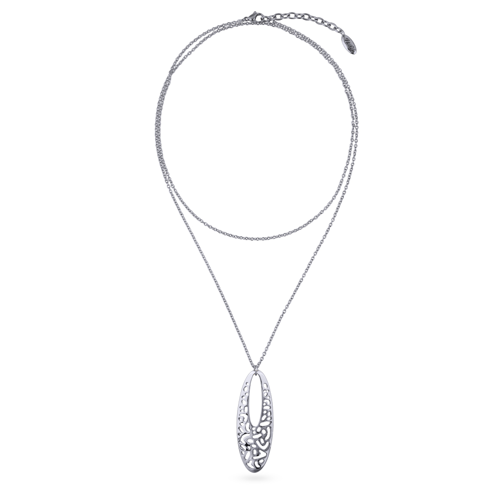 Описание: Изготовлено из ювелирного сплава на основе латуни с гальваническим покрытием родием. Длина цепочки 85см. Замок-карабин с удлинителем 5см. Длина кулона 5.3см.