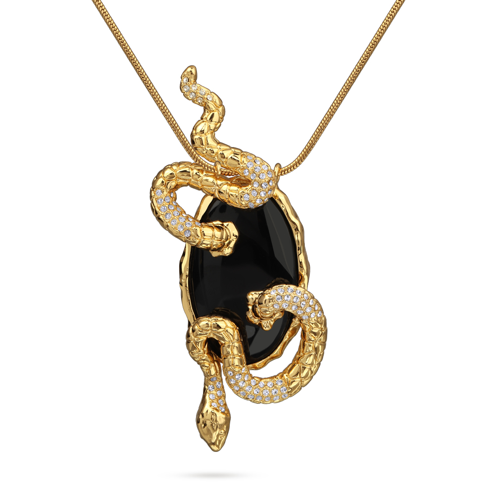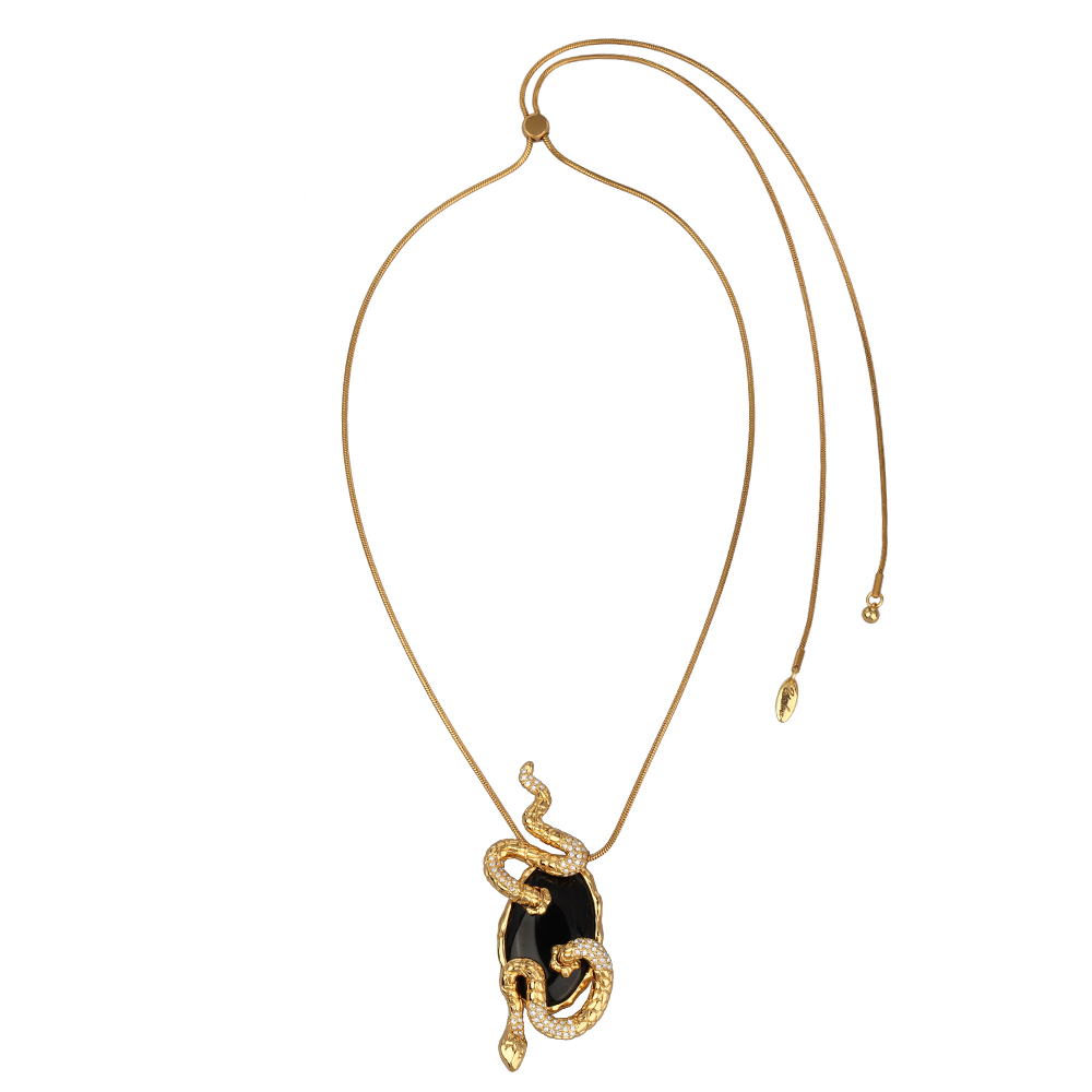 Описание: Изготовлено из ювелирного сплава на основе латуни с гальваническим покрытием золотом. Изделие украшают белые кристаллы SW. На цепочке установлен бегунок регулировки длины. Максимальная длина 90см. Кулон 8х3см.