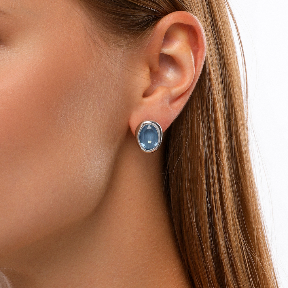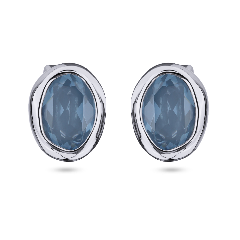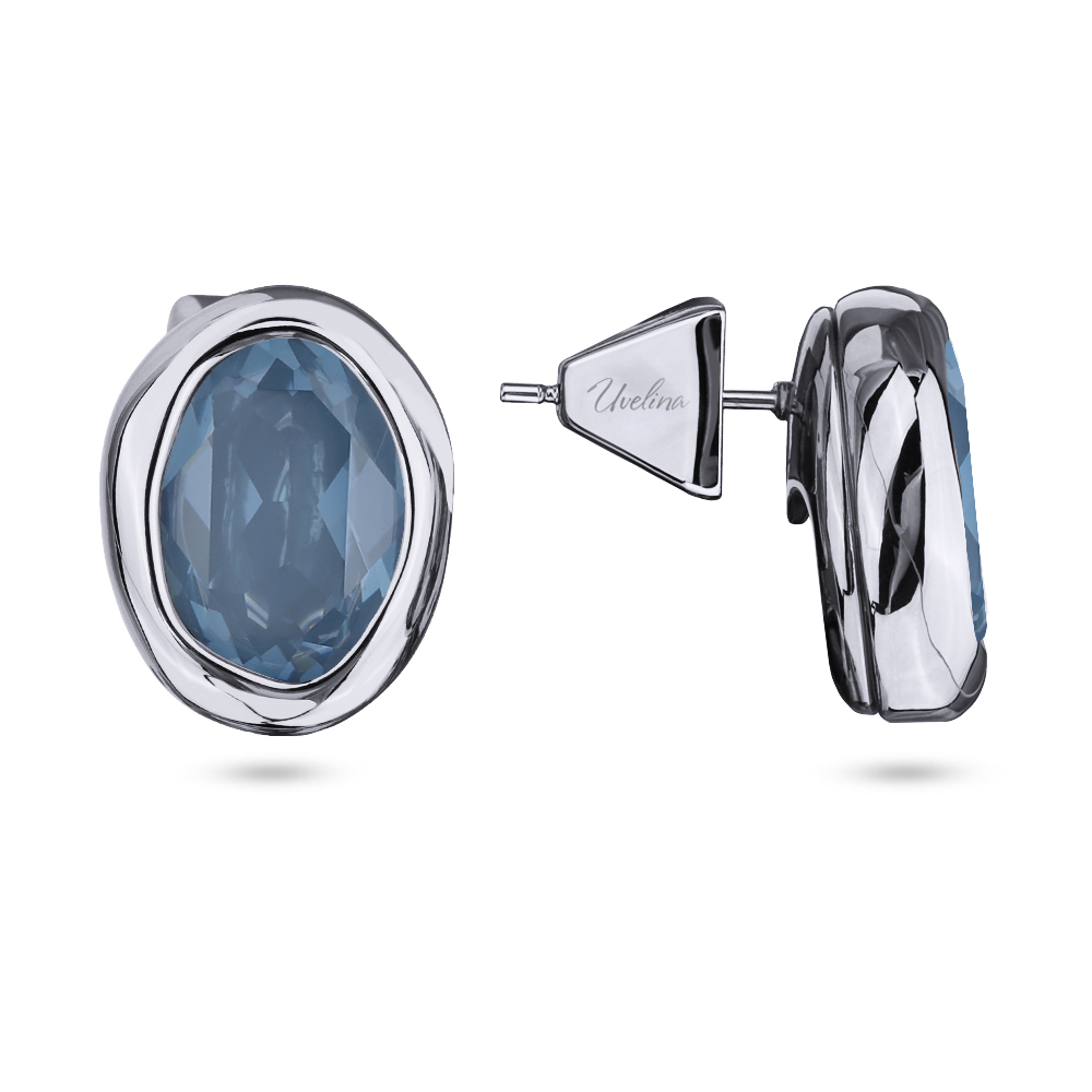 Описание: Изготовлено из ювелирного сплава на основе латуни с гальваническим покрытием родием. Изделие украшают кристаллы SW цвета байкальский лед. Размер серьги 1.7х1.4см. Застежка-гвоздики.