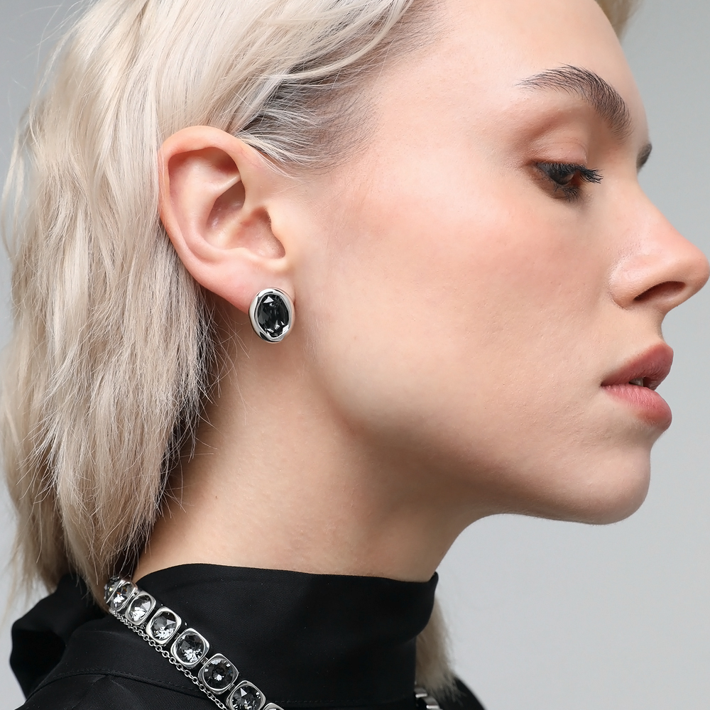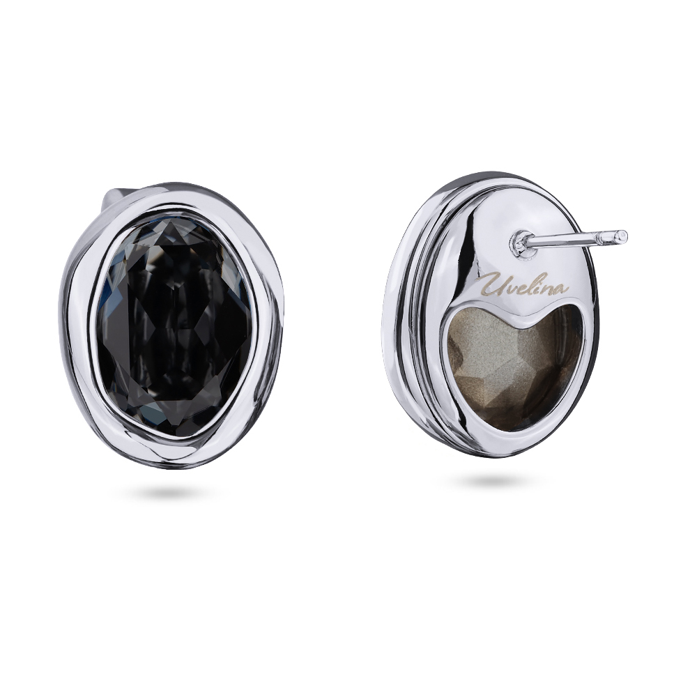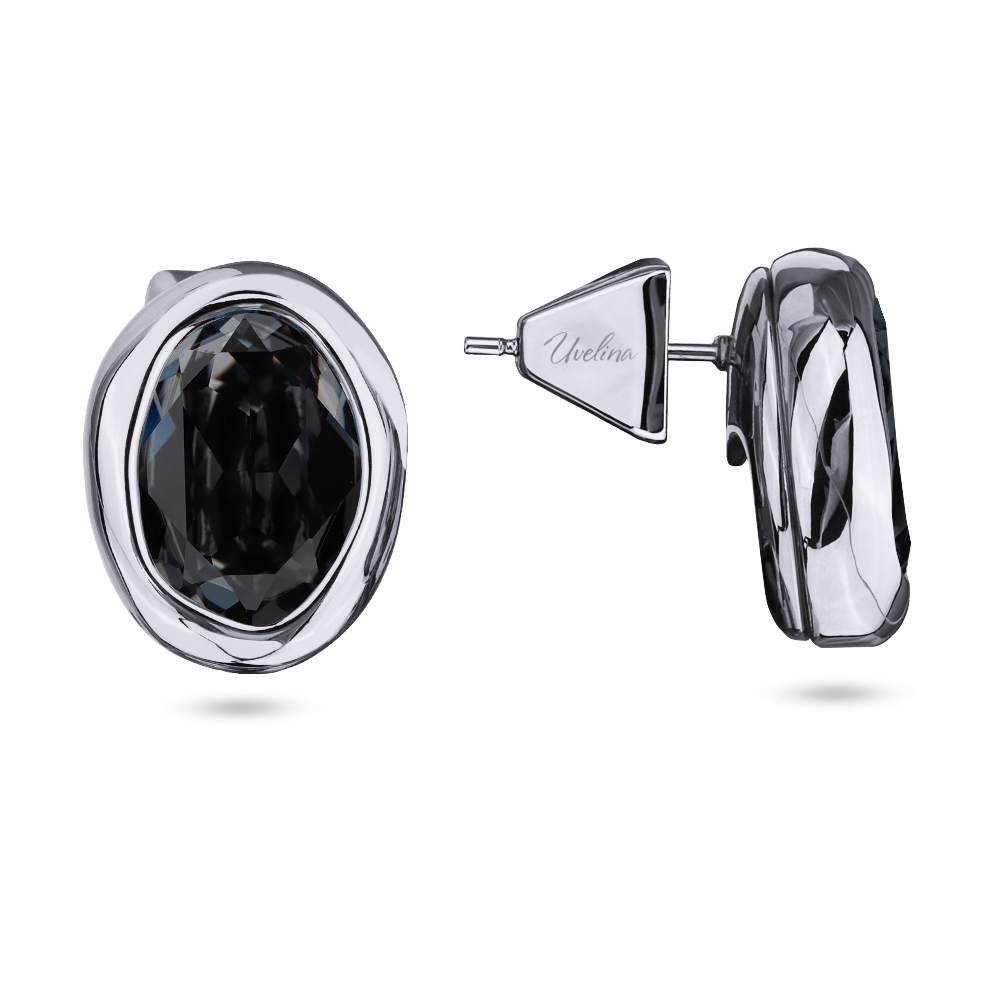 Описание: Изготовлено из ювелирного сплава на основе латуни с гальваническим покрытием родием. Изделие украшают кристаллы SW темно-серого цвета. Размер 1.7х1.4см. Застежка-гвоздики.