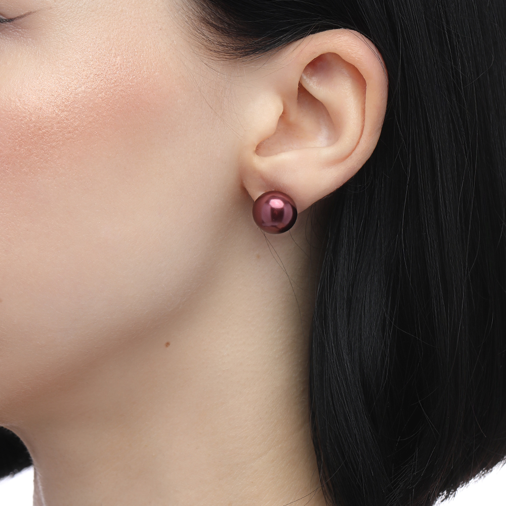 Описание: Изготовлено из ювелирного сплава на основе латуни с гальваническим покрытием родиемм. Изделие украшает майорский жемчуг диаметром 12мм цвета бургунди. Застёжка-гвоздики.