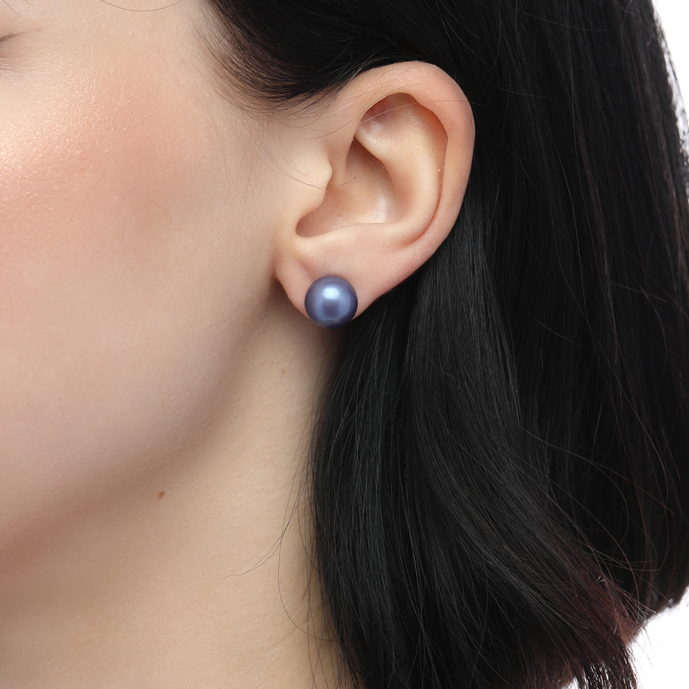 Описание: Изготовлено из ювелирного сплава на основе латуни с гальваническим покрытием родием. Изделие украшает майорский жемчуг черничного цвета диаметром 12мм. Застёжка-гвоздики.