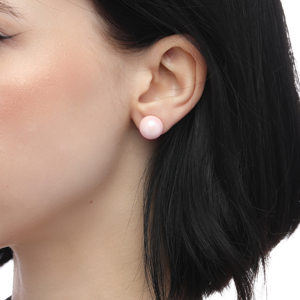 Описание: Изготовлено из ювелирного сплава на основе латуни с гальваническим покрытием родием. Изделие украшает майорский жемчуг розового цвета диаметром 12мм. Застёжка-гвоздики.