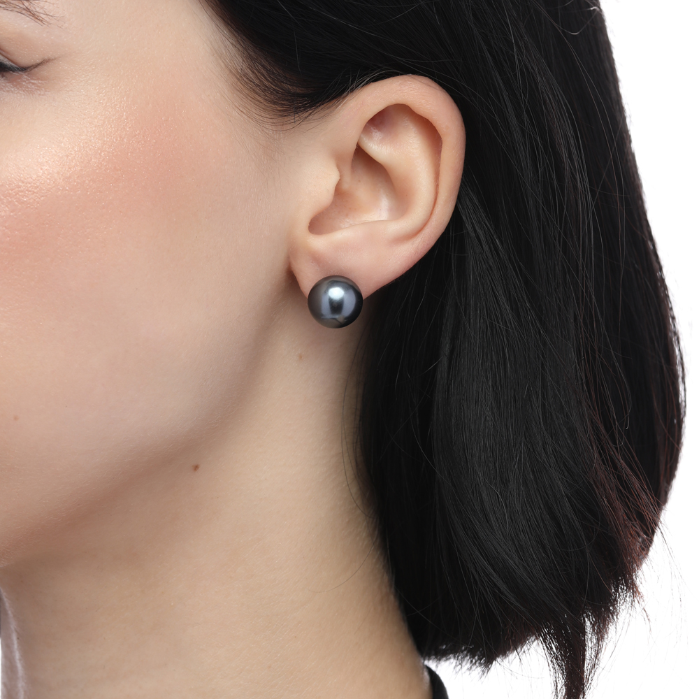Описание: Изготовлено из ювелирного сплава на основе латуни с гальваническим покрытием золотом. Изделие украшает майорский жемчуг темно-серого цвета диаметром 12мм. Застёжка-гвоздики.