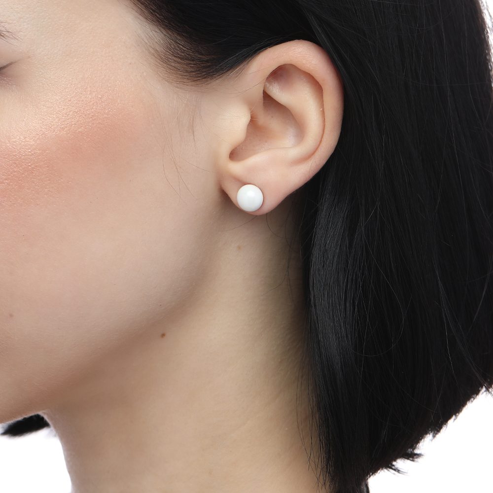 Пусеты (Майорка 8мм белая; покрытие золото)