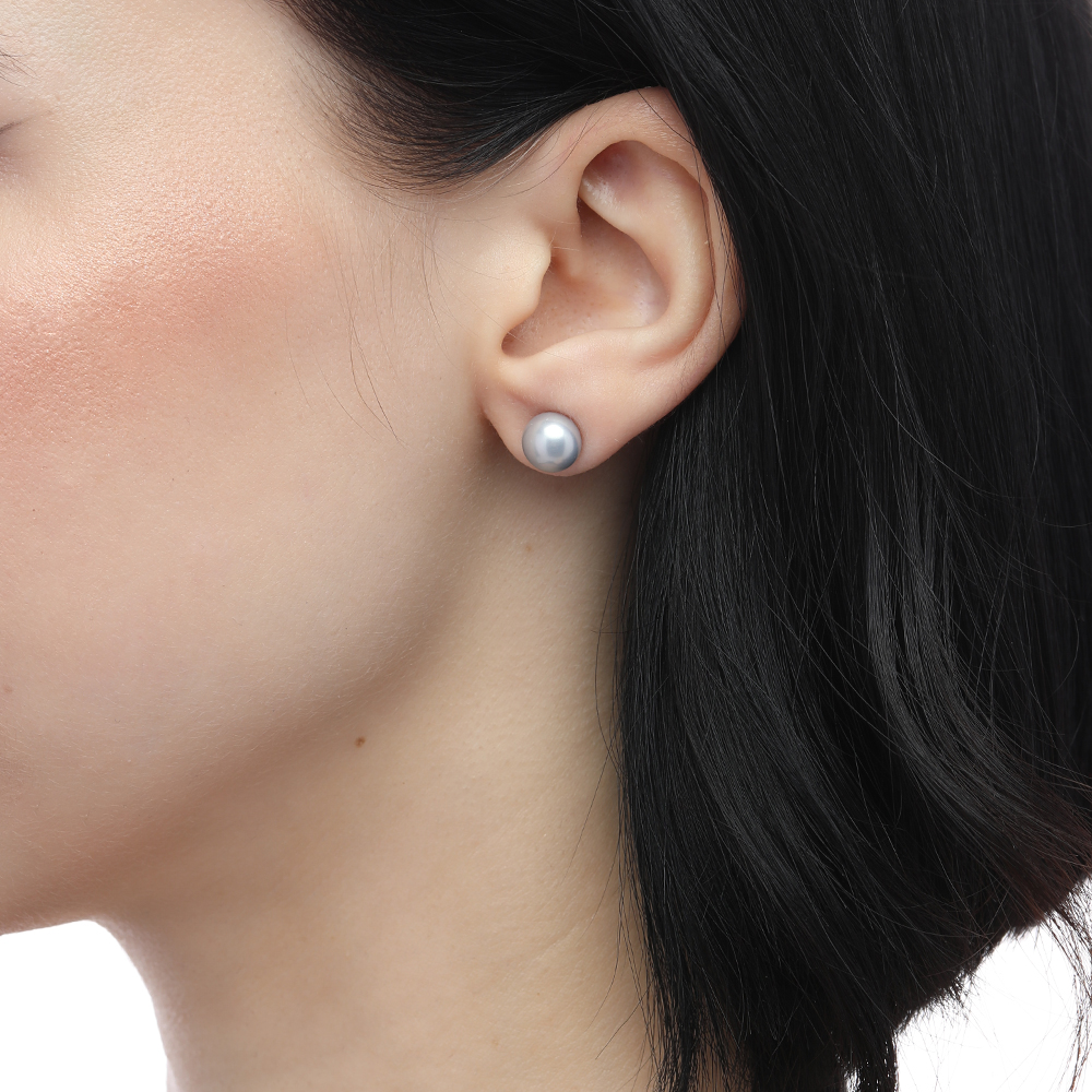 Описание: Изготовлено из ювелирного сплава на основе латуни с гальваническим покрытием родием. Изделие украшает майорский жемчуг серо-голубого цвета диаметром 8мм. Застёжка-гвоздики.
