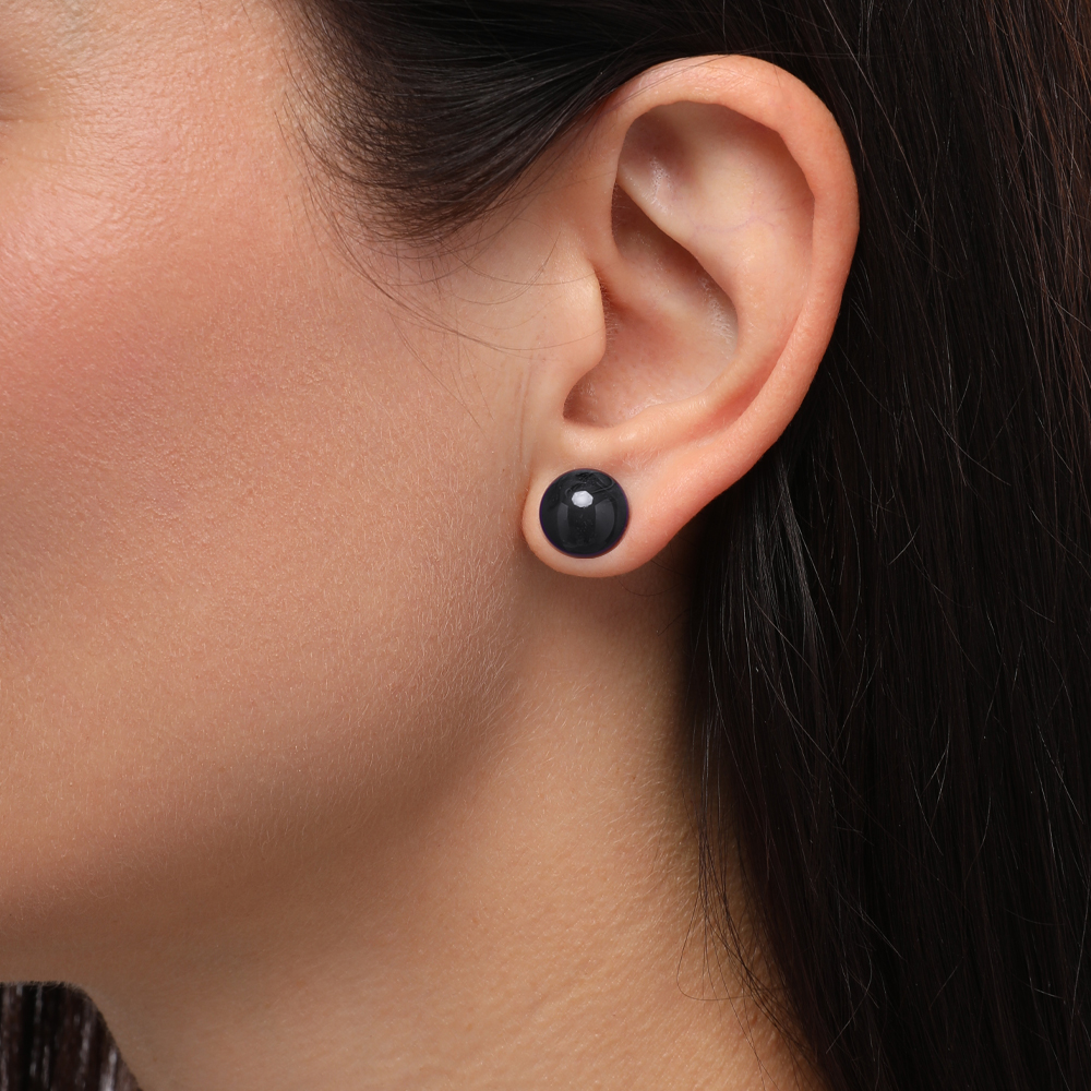 Описание: Изготовлено из ювелирного сплава на основе латуни с гальваническим покрытием родием. Изделие украшает муранское стекло черного цвета. Диаметр 10-12мм. Застежка-гвоздики.