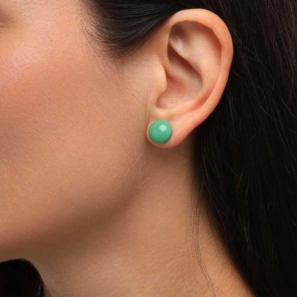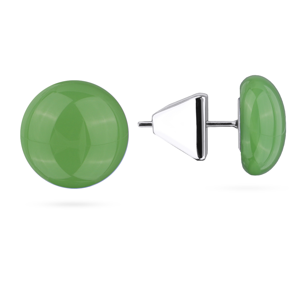 Описание: Изготовлено из ювелирного сплава на основе латуни с гальваническим покрытием родием. Изделие украшает муранское стекло зеленого цвета. Диаметр 10-12мм. Застежка-гвоздики.