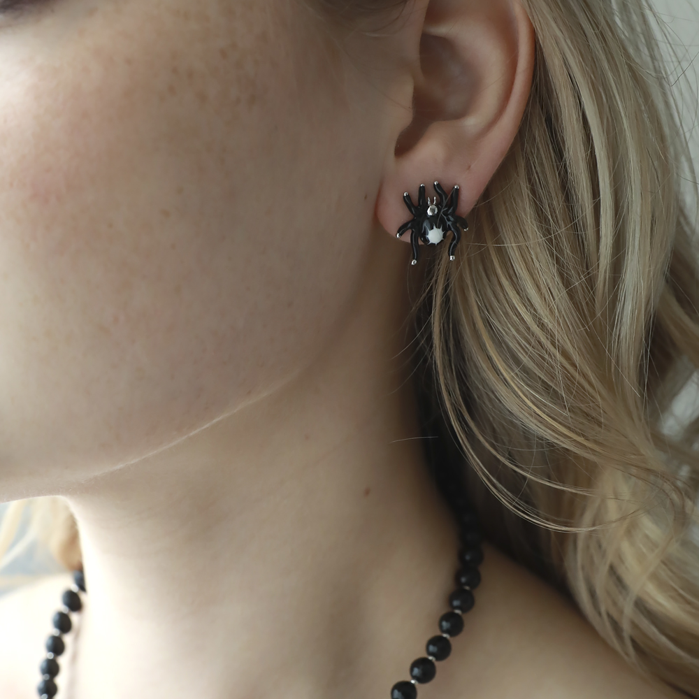 Пусеты паук (эмаль черная, белая; покрытие родий)