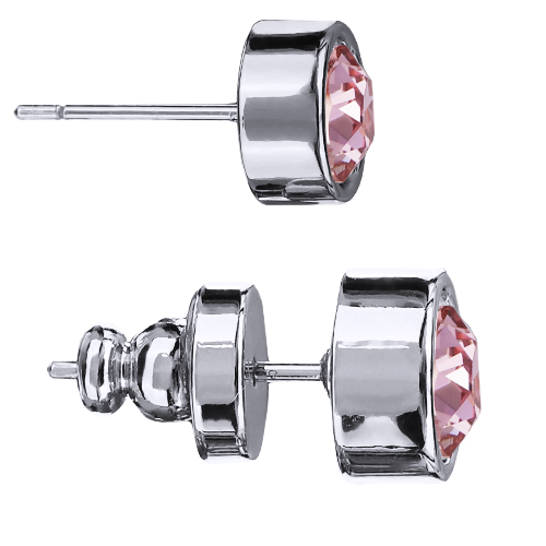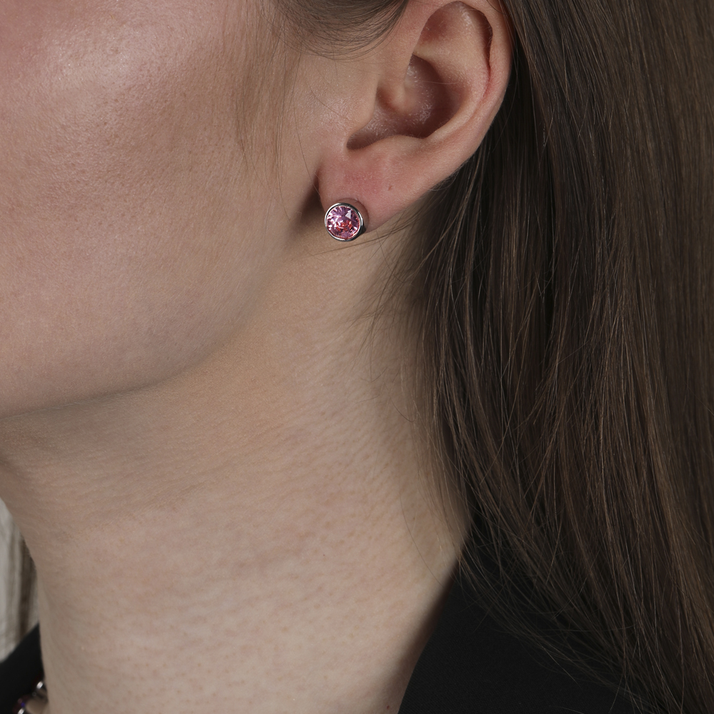 Описание: Изготовлено из ювелирного сплава на основе латуни с гальваническим покрытием родием. Изделие украшают кристаллы SW светло-розового цвета диаметром 6мм. Застежка-гвоздики.