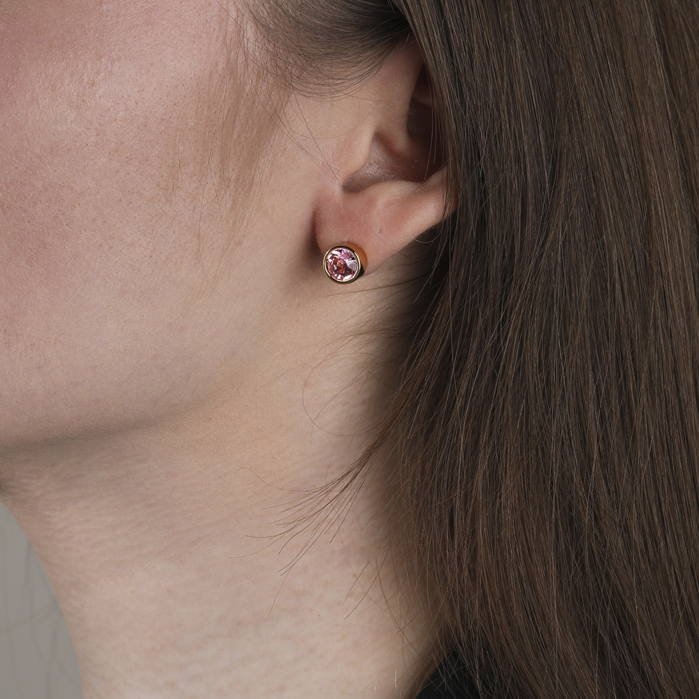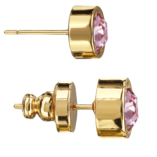 Описание: Изготовлено из ювелирного сплава на основе латуни с гальваническим покрытием золотом. Изделие украшают кристаллы SW светло-розового цвета диаметром 6мм. Застежка-гвоздики.
