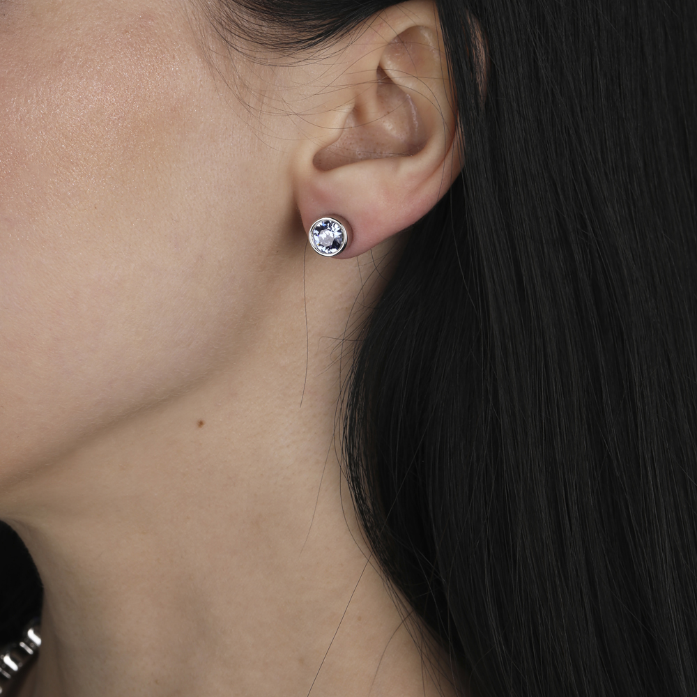 Описание: Изготовлено из ювелирного сплава на основе латуни с гальваническим покрытием родием. Изделие украшают кристаллы SW цвета светлый сапфир диаметром 6мм. Застежка-гвоздики.