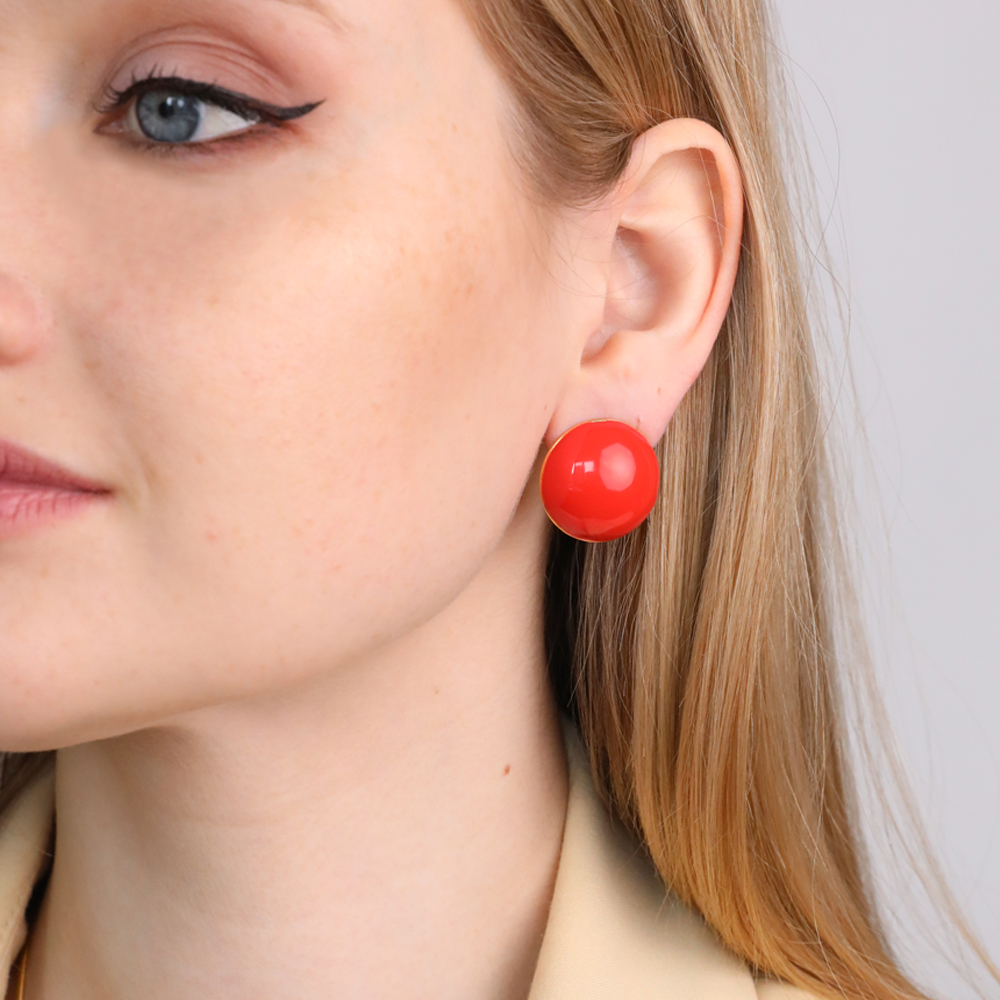 Описание: Изготовлено из ювелирного сплава на основе латуни с гальваническим покрытием золотом. Изделие украшает эмаль алого цвета. Диаметр 3см. Итальянская застежка.