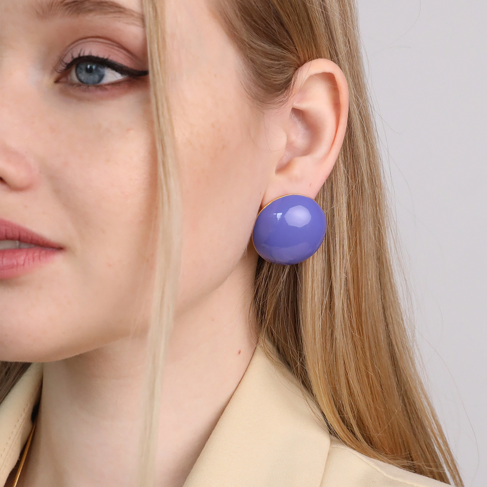 Описание: Изготовлено из ювелирного сплава на основе латуни с гальваническим покрытием золотом. Изделие украшает эмаль фиолетового цвета. Диаметр 3см. Итальянская застежка.