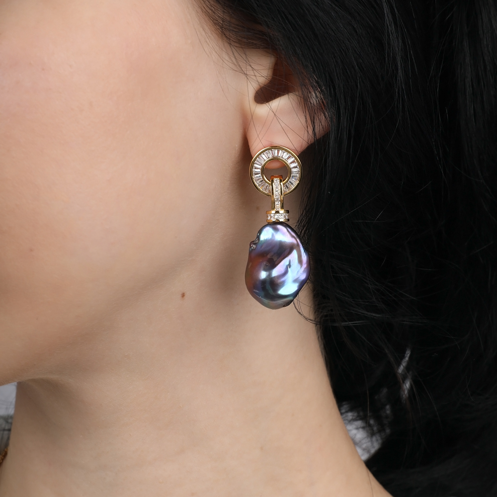 Вставка: жемчуг бензиновый, белый фианит