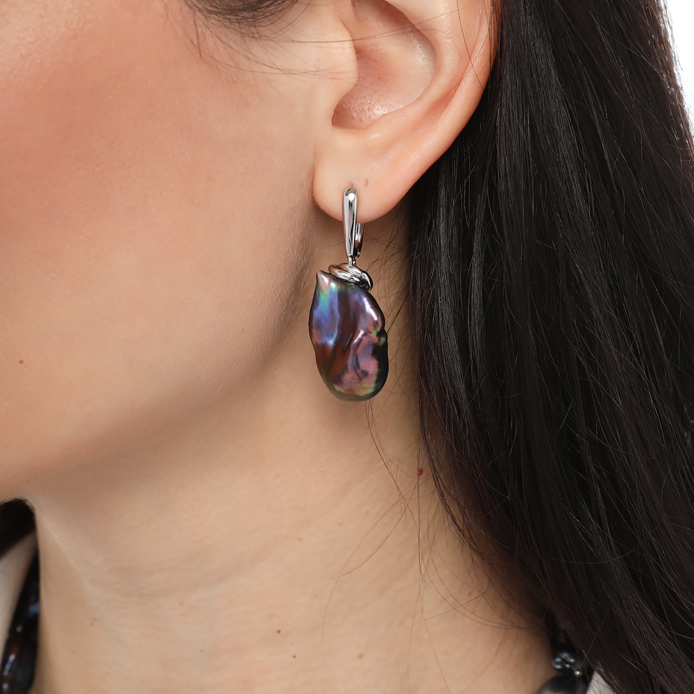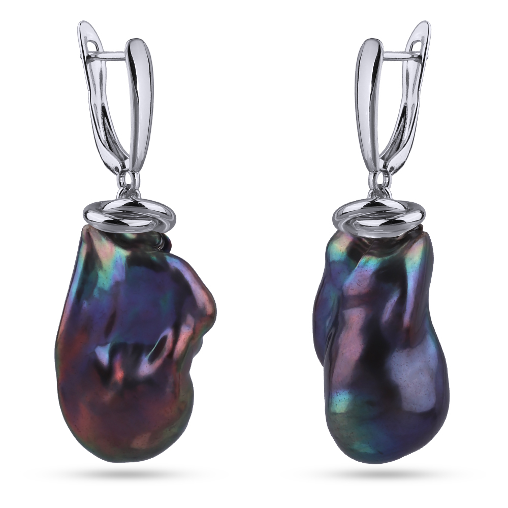 Серьги Барокко (жемчуг бензиновый; покрытие родий)