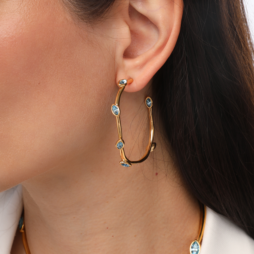 Серьги Эйва (кристаллы SW аквамарин; покрытие золото)