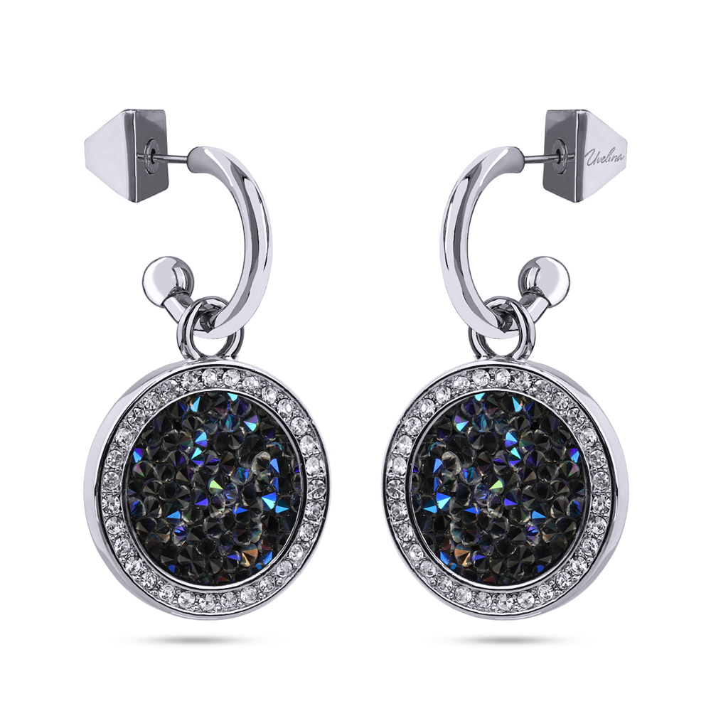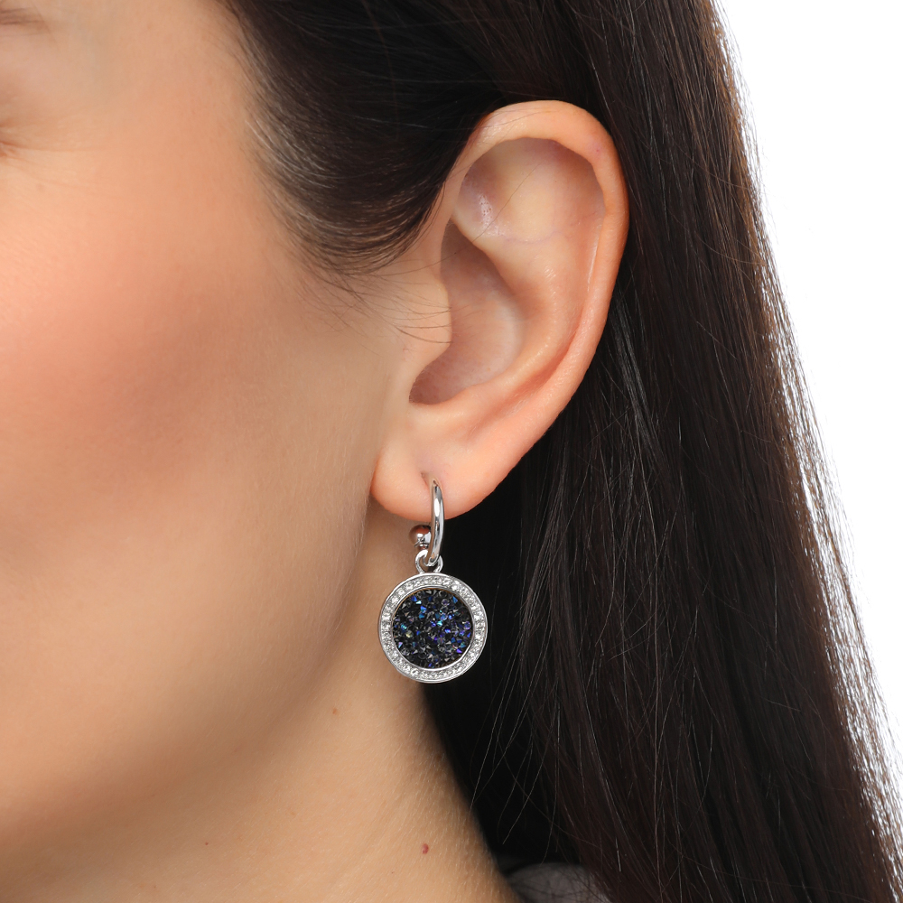 Описание: Изготовлено из ювелирного сплава на основе латуни с гальваническим покрытием родием. Изделие украшают кристаллы SW синего цвета. Размер серьги 3, 2х1, 8см.