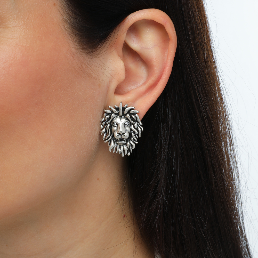 Серьги лев (кристаллы SW белые; покрытие античное серебро)