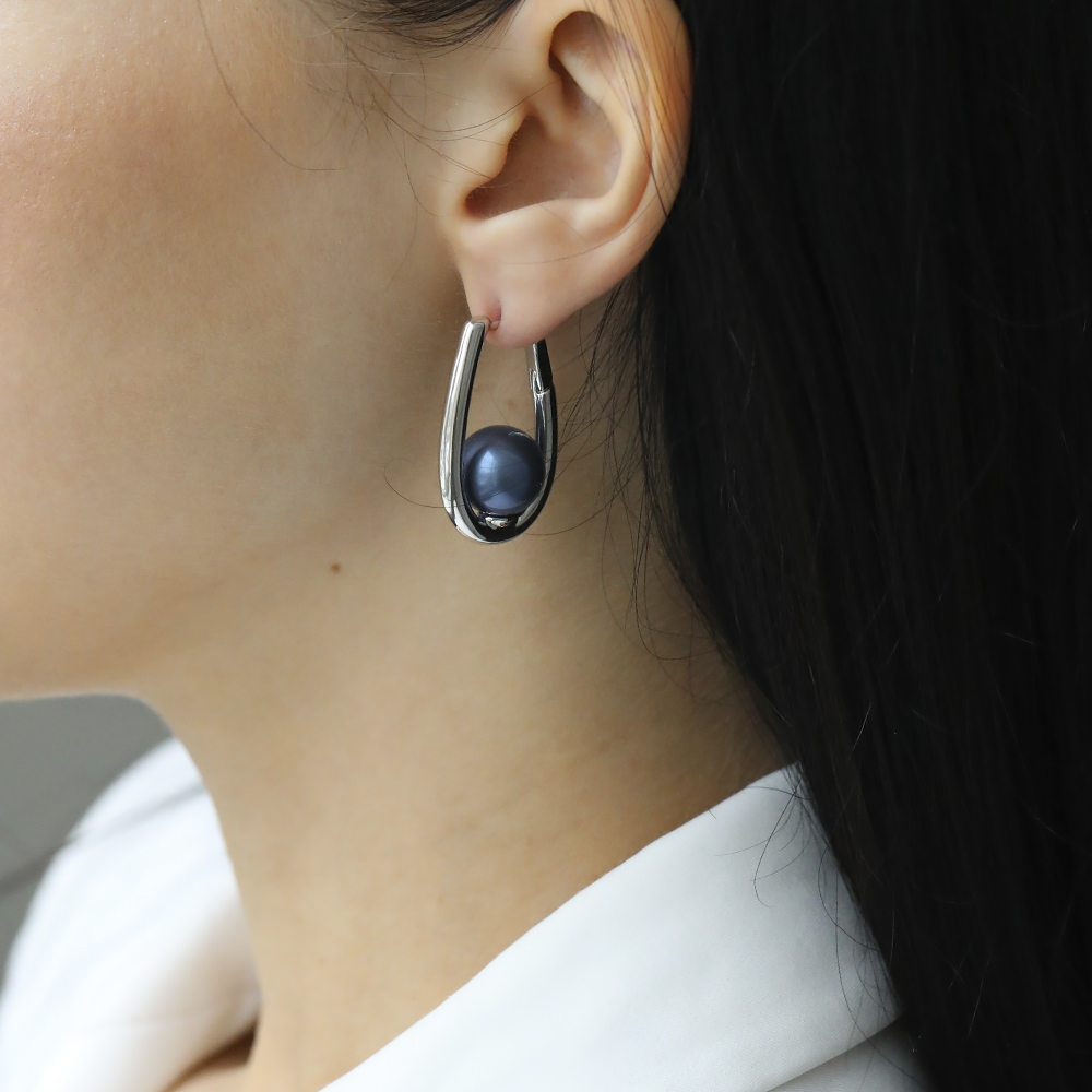 Описание: Изготовлено из ювелирного сплава на основе латуни с гальваническим покрытием родием. Изделие украшает майорский круглый жемчуг черничного цвета диаметром 12мм. Английский замок. Длина 3, 5см.