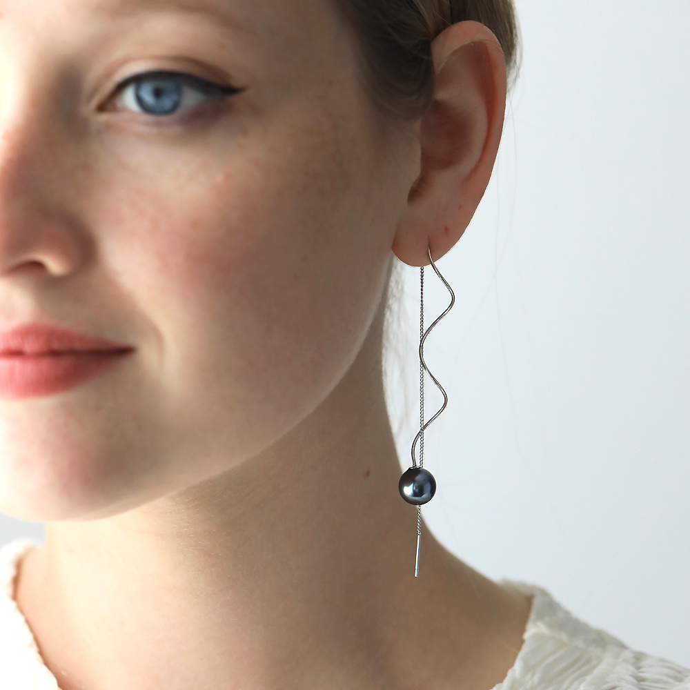Серьги (Майорка 12мм темно-серая; покрытие родий)