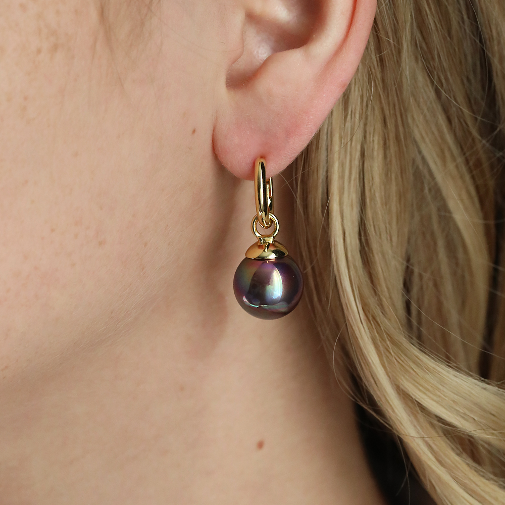 Описание: Изготовлено из ювелирного сплава на основе латуни с гальваническим покрытием золотом. Изделие украшают майорский круглый жемчуг диаметром 14мм цвета бургунди хамелеон. Английский замок. Длина 3.2см.
