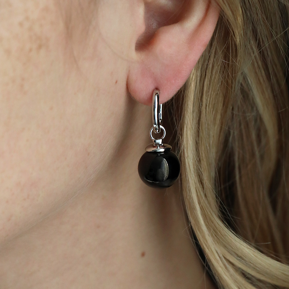 Описание: Изготовлено из ювелирного сплава на основе латуни с гальваническим покрытием родием. Изделие украшает майорский круглый жемчуг черного цвета диаметром 14мм. Английский замок. Длина 3.2см.