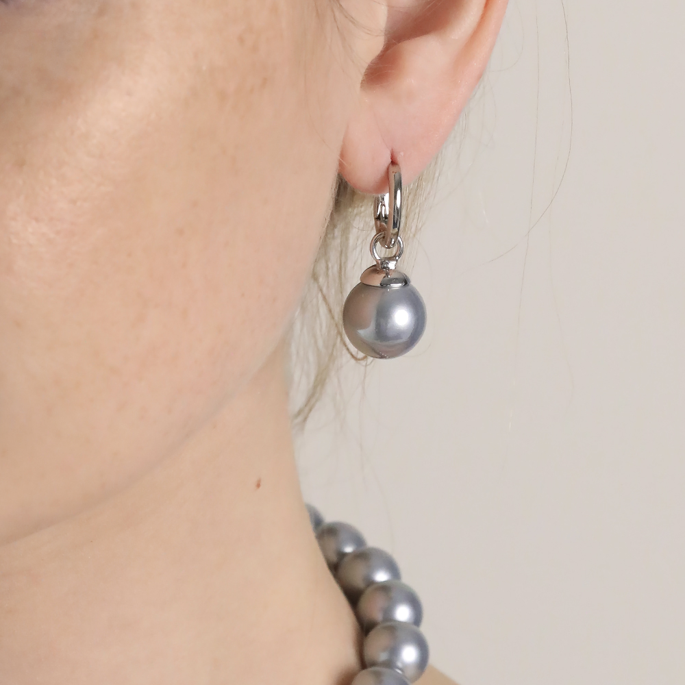 Описание: Изготовлено из ювелирного сплава на основе латуни с гальваническим покрытием родием. Изделие украшают майорский круглый жемчуг серо-голубого цвета диаметром 14мм. Английский замок. Длина 3.2см.
