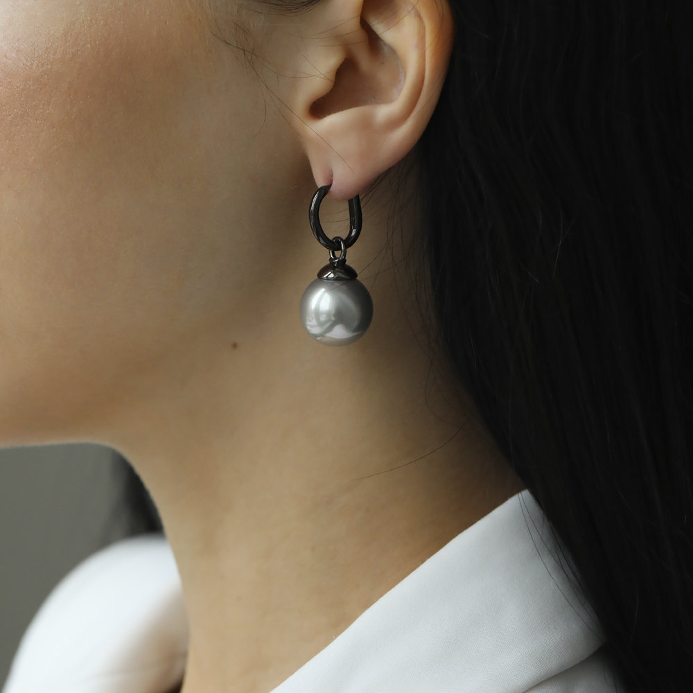 Описание: Изготовлено из ювелирного сплава на основе латуни с гальваническим покрытием черным родием. Изделие украшает майорский жемчуг серо-голубого цвета диаметром 16мм. Английский замок. Длина 3.5см.