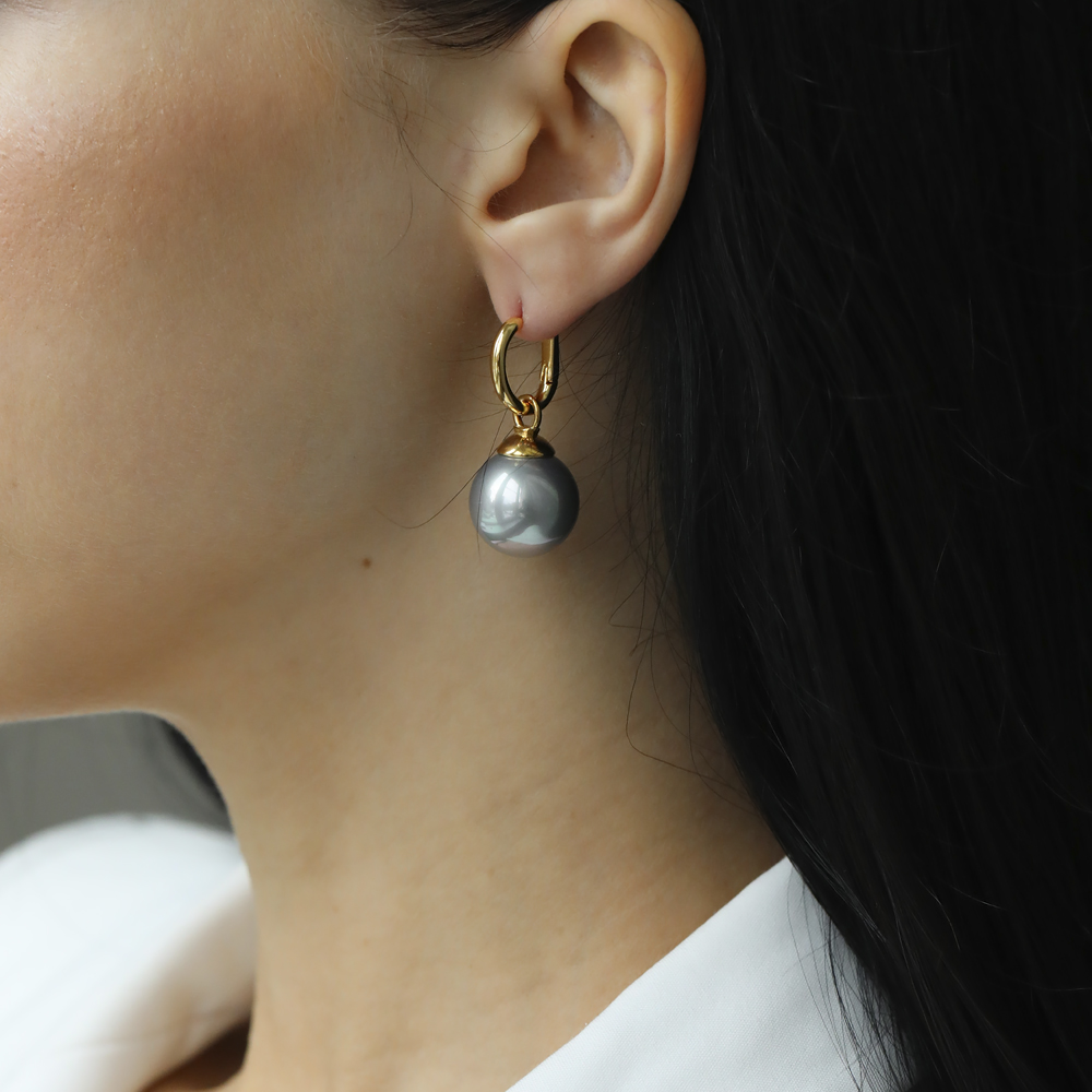 Описание: Изготовлено из ювелирного сплава на основе латуни с гальваническим покрытием золотом. Изделие украшает майорский круглый жемчуг серо-голубого цвета диаметром 16мм. Английский замок. Длина 3.5см.