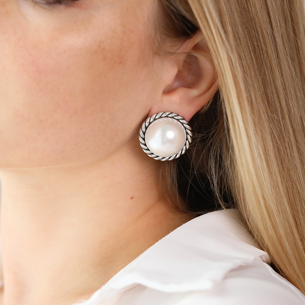 Описание: Изготовлено из ювелирного сплава на основе латуни с гальваническим покрытием античным серебром. Изделие украшает жемчуг Майорка белого цвета диаметром 2, 2см. Итальянская застежка.