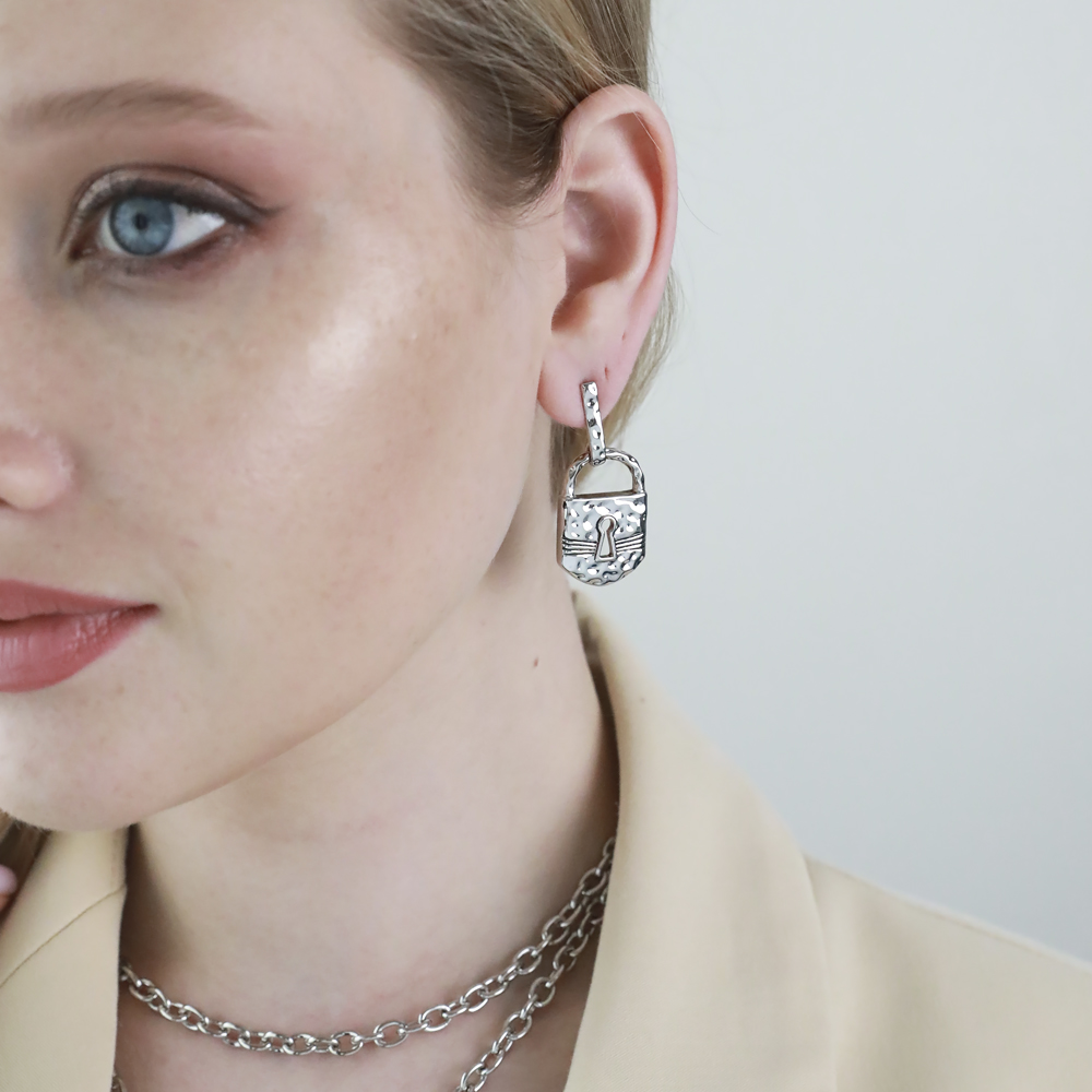 Описание: Изготовлено из ювелирного сплава на основе латуни с гальваническим покрытием родием. Разме серьги 4х2см. Застежка-гвоздики.