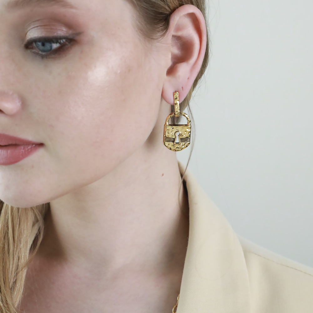 Описание: Изготовлено из ювелирного сплава на основе латуни с гальваническим покрытием золотом. Размер серьги 4.2х1.8см. Застежка-гвоздики.