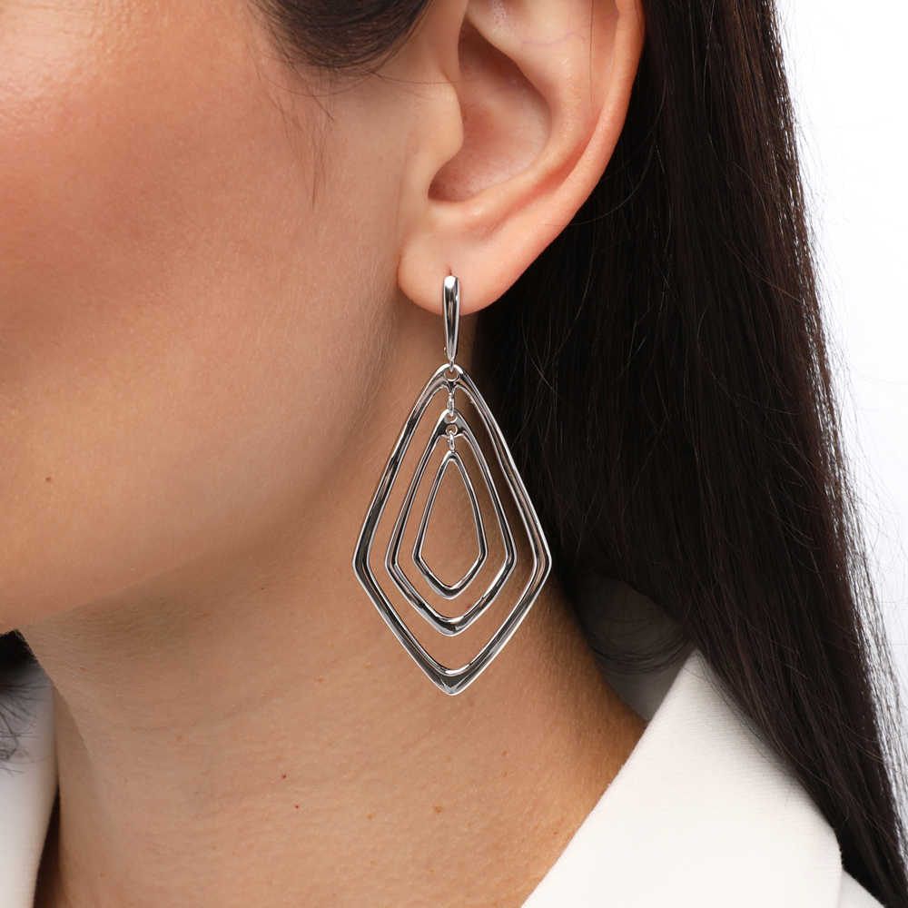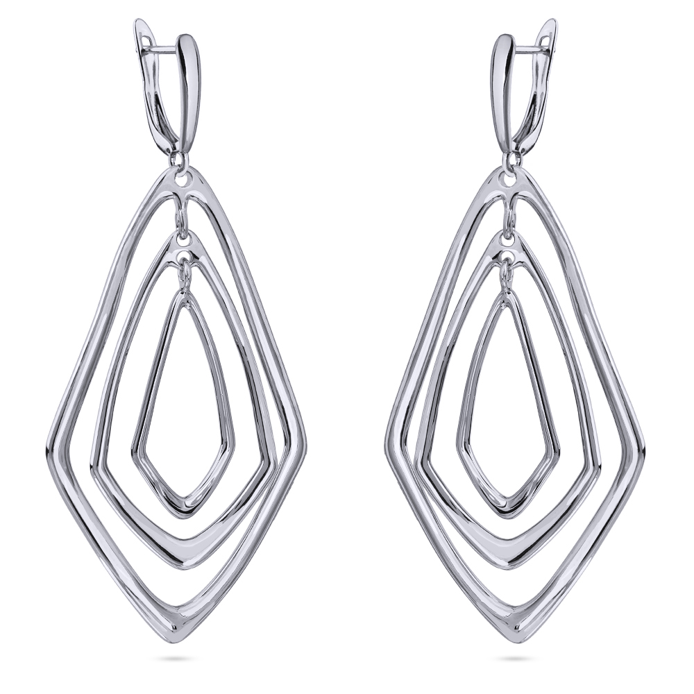 Описание: Изготовлено из ювелирного сплава на основе латуни с гальваническим покрытием родием. Размер серьги 7х3, 5см. Английская застежка.