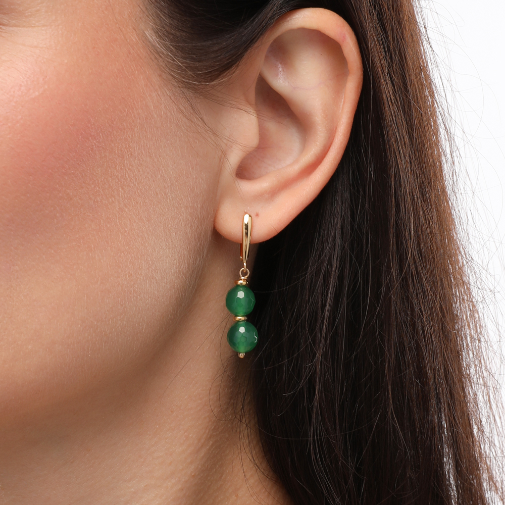 Описание: Изготовлено из ювелирного сплава на основе латуни с гальваническим покрытием золотом. Изделие украшает натуральный зеленый агат диаметром 8мм. Длина 3.5см.