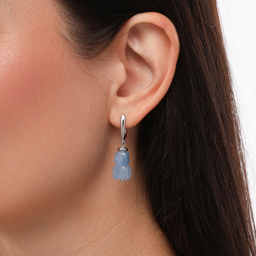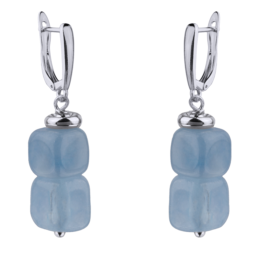 Описание: Изготовлено из ювелирного сплава на основе латуни с гальваническим покрытием родием. Изделие украшает аквамариновый кварц диаметром 7-8мм. Длина серьги 3.5см. Английская застежка.