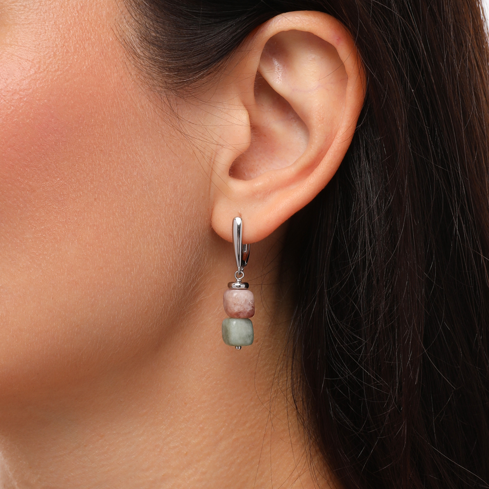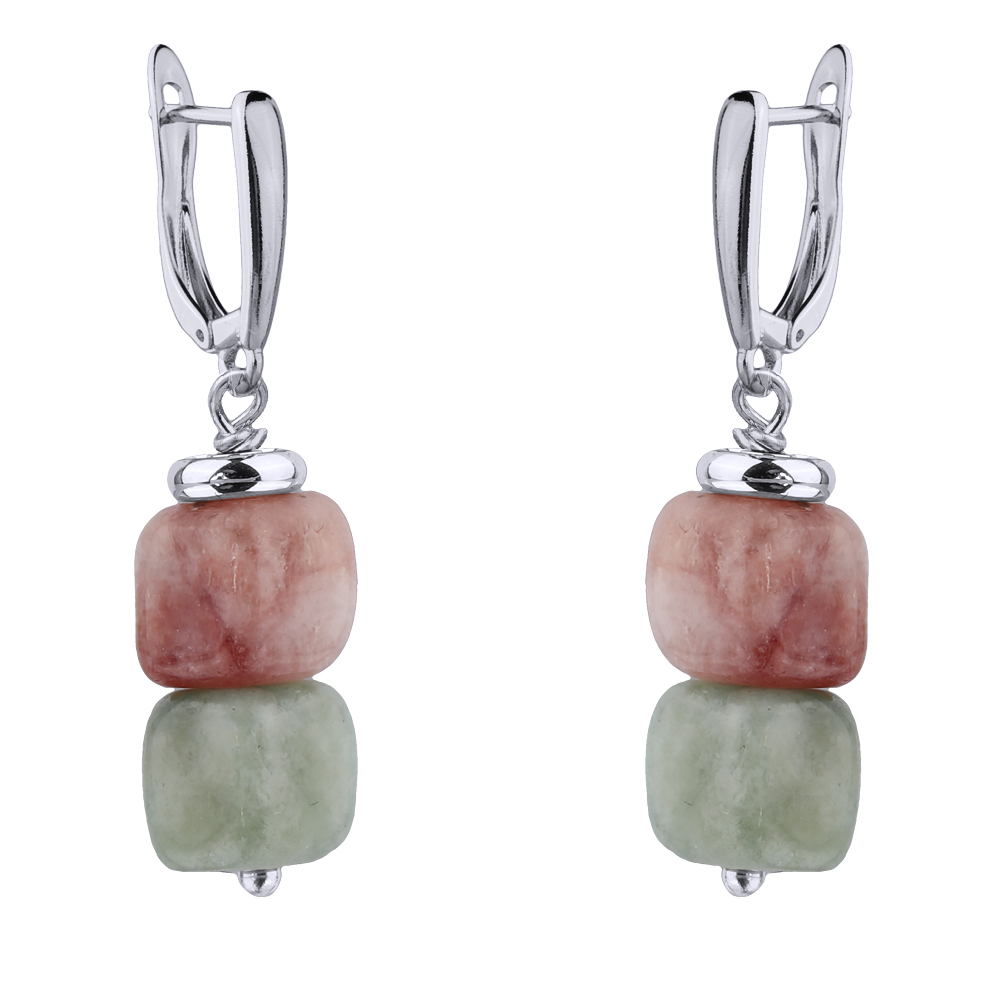 Серьги Селена (кварц осенний микс 7-8мм; покрытие родий)