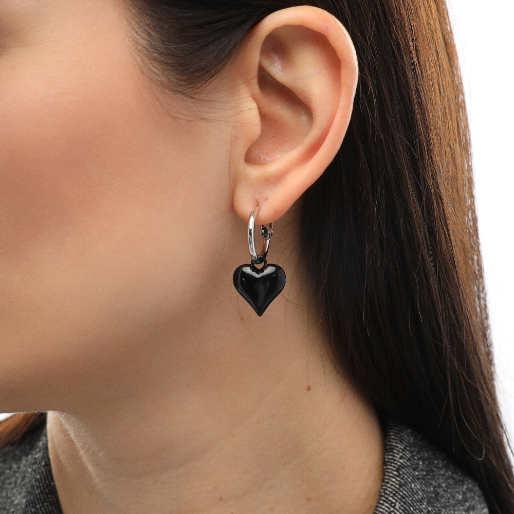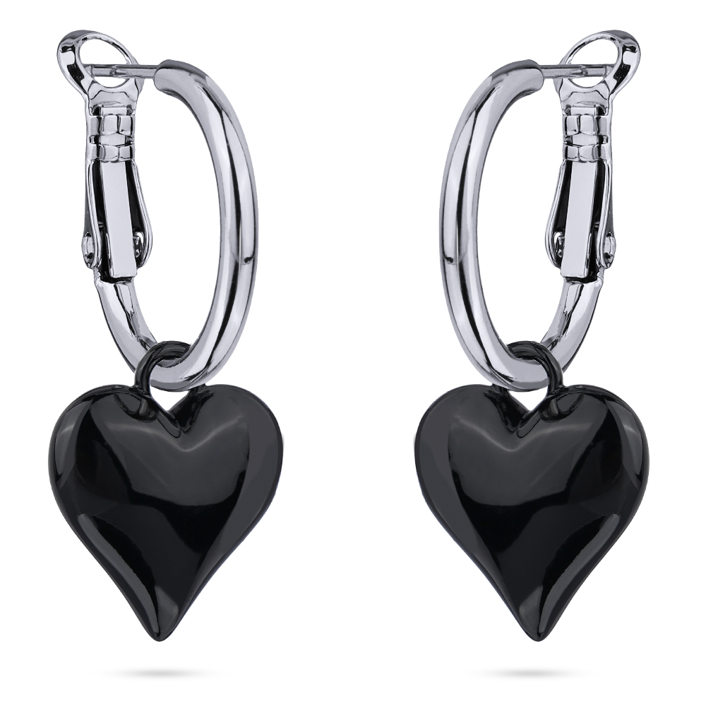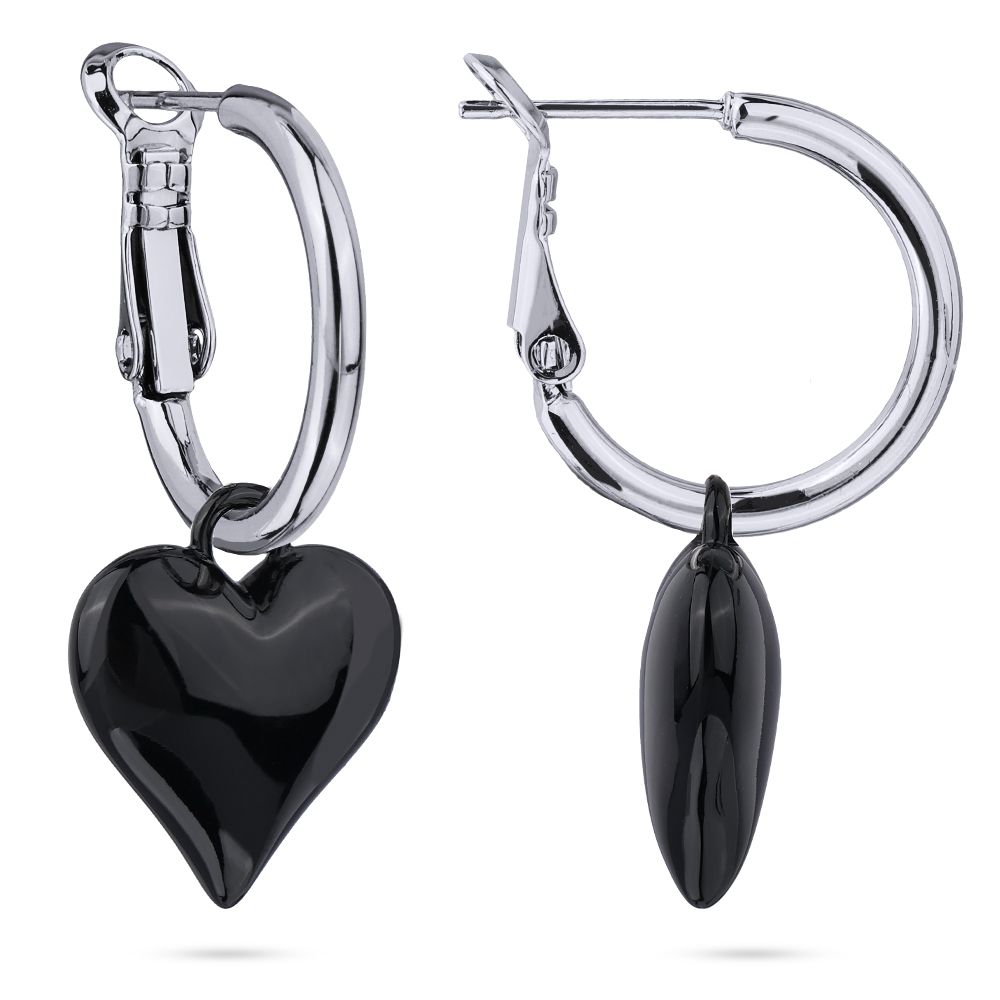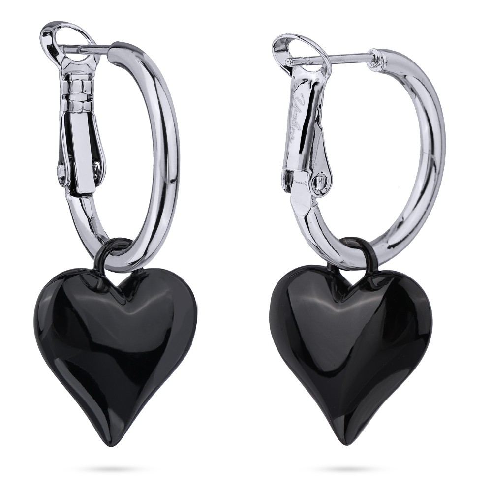 Описание: Изготовлено из ювелирного сплава на основе латуни с гальваническим покрытием родием. Изделие украшает черная эмаль. Размер серьги 3, 5х1, 6см. Итальянская застежка.