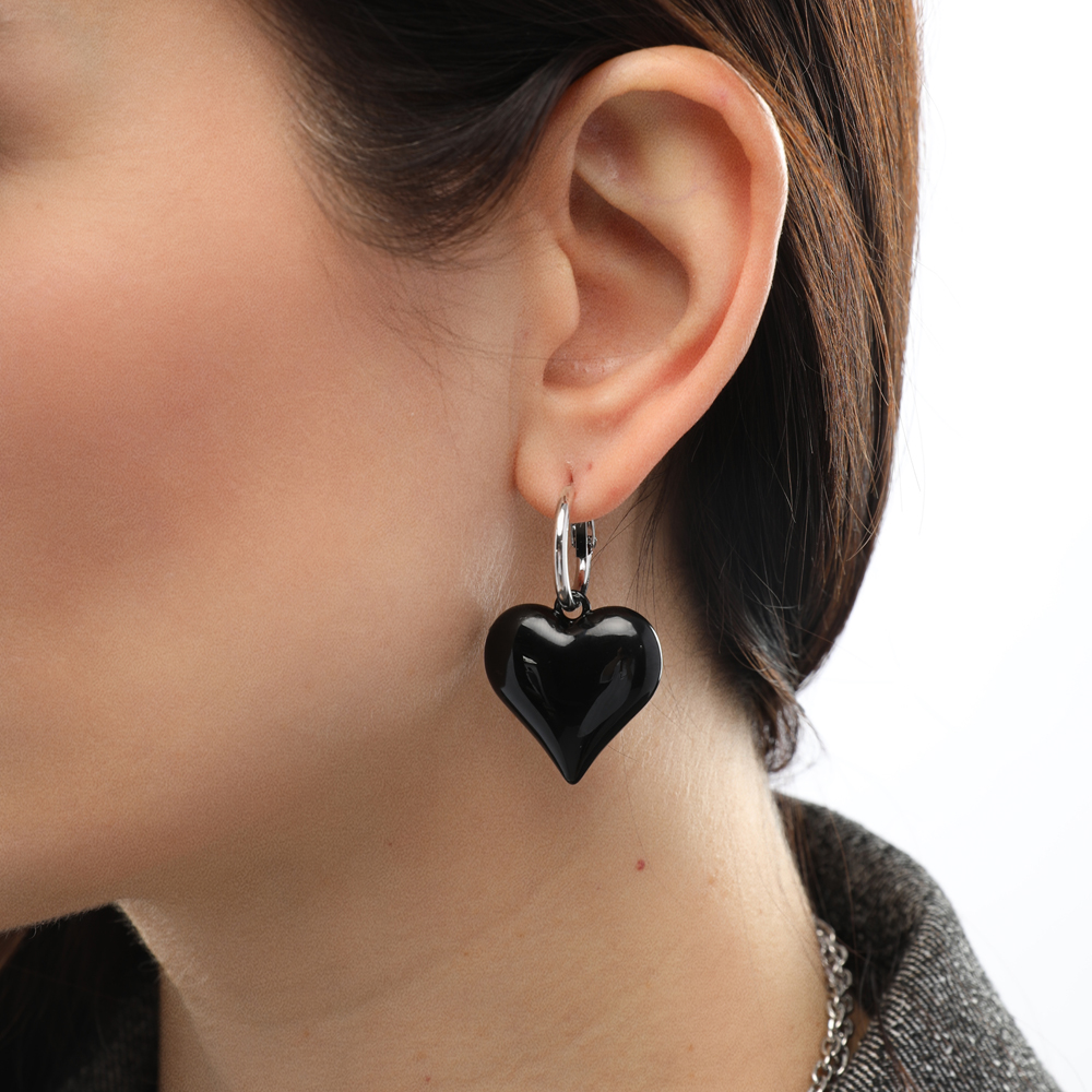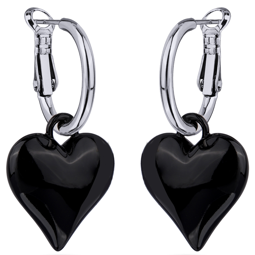 Описание: Изготовлено из ювелирного сплава на основе латуни с гальваническим покрытием родием. Изделие украшает эмаль черного цвета. Размер серьги 4.3х2.5см. Итальянская застежка.